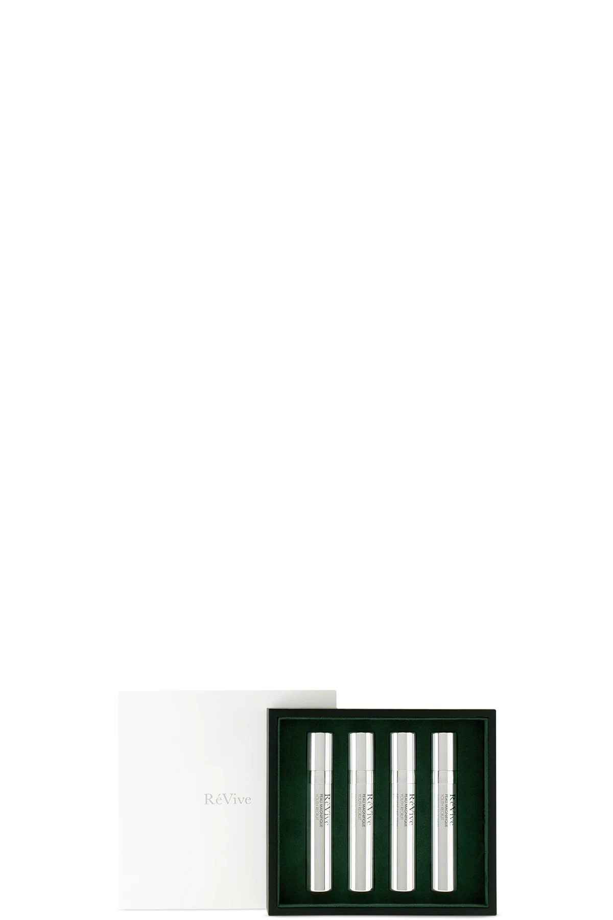 Set of four treatments for repairing, firming, and increasing skin cell renewal. Features Bio-Renewal Peptide technology. Suitable for all skin types. Free of alcohol, sulfates, acetone, formaldehyde, phthalates, and synthetic fragrance. Vegan.