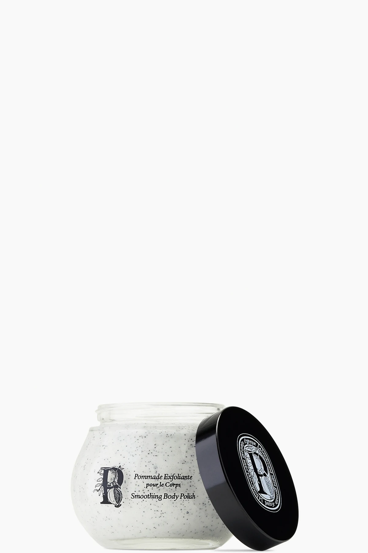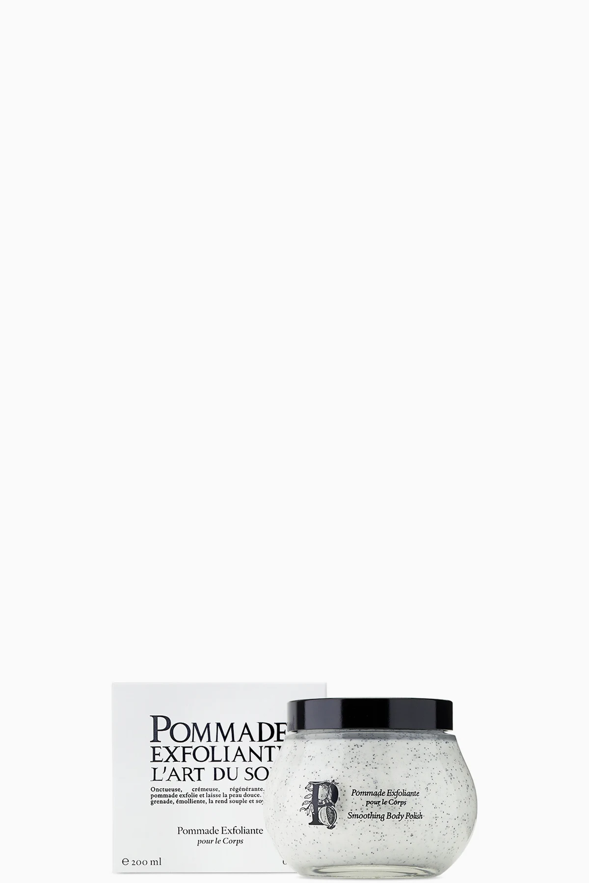 Body scrub for exfoliating and moisturizing skin. Features pomegranate seed oil, jasmine floral water, and peach butter.