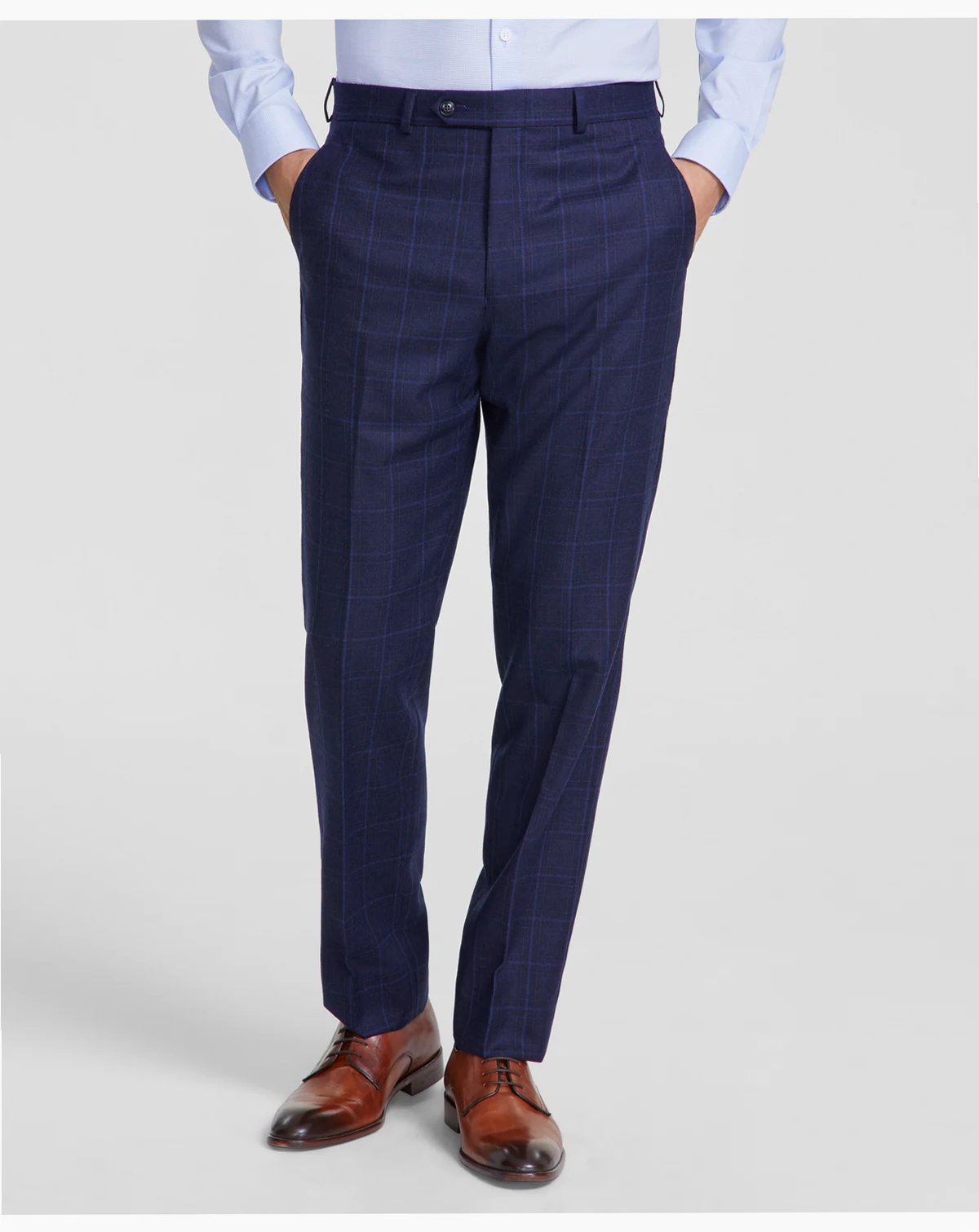 Men's Classic-Fit Fall Wool-Blend Stretch Plaid Suit Separate Pants