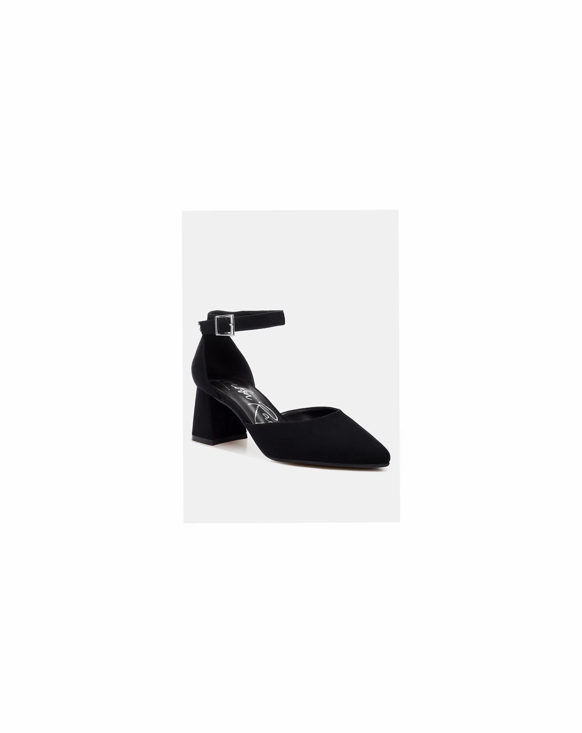 The pointed toe sandals are minimal, versatile, and chic with a comfortable cushion insole that cuts strain and offers a relaxed fit. The sandals are a must have if you are looking for a pair that is easy to style!A Type: Sandals Upper Material: Microfiber Outer Sole: TPR Closed Pointed Toe Flared Block Heels Ankle Strap In Buckle Fastening Comfortable Cushion Insoles Heel Height: 2.5 inches SH5054
