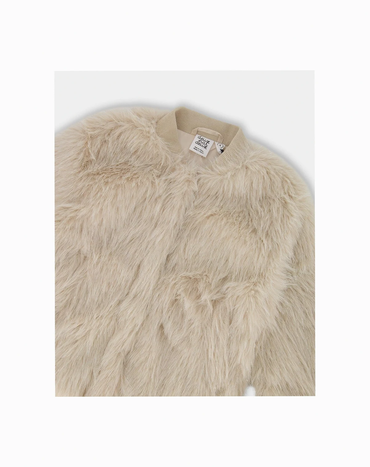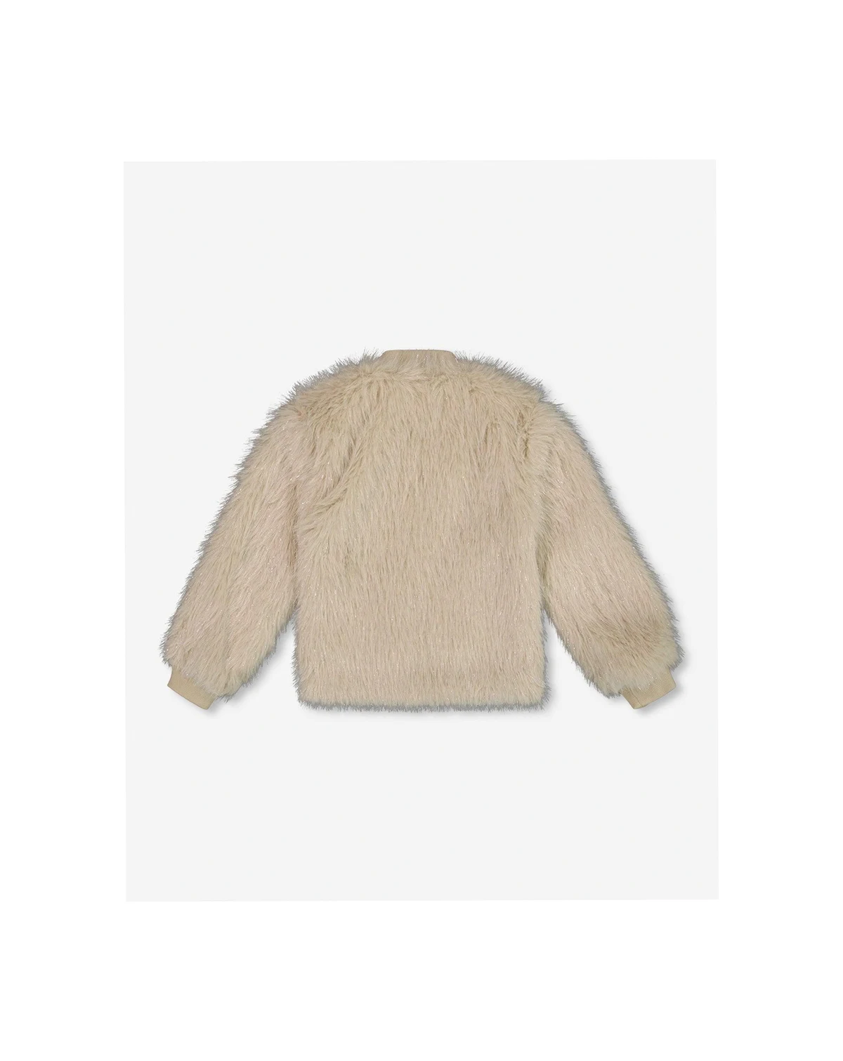 Our Short Faux Fur Coat Beige brings warmth and wild style together in the coziest way. Designed in ultra-soft shaggy faux fur, this jacket features long sleeves, a collarless silhouette with a ribbed inner neckline and cuffs, and a full-length front zipper for easy layering. It s a fashion-forward piece that adds instant flair to any outfit.