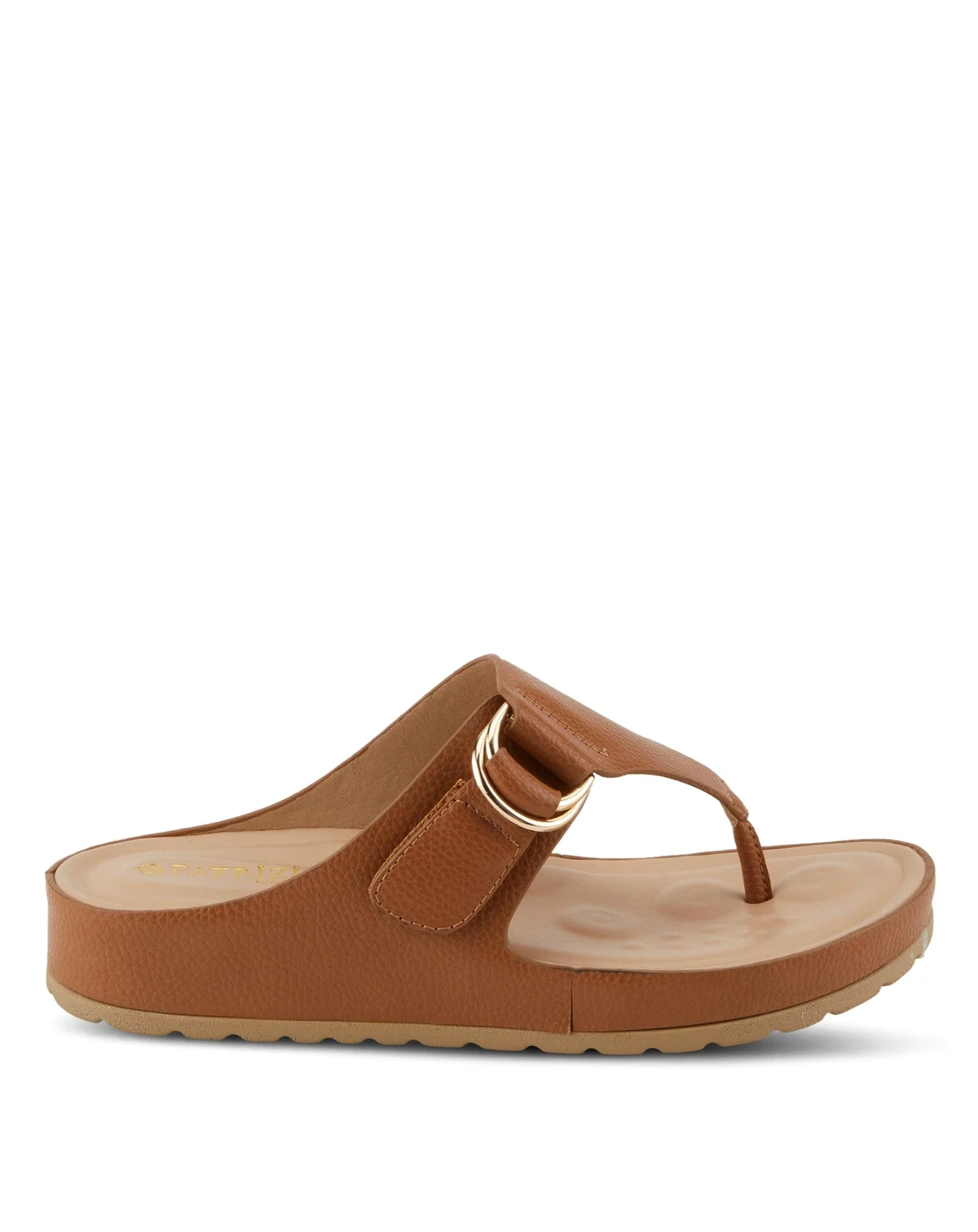 Add a touch of understated elegance to your warm-weather wardrobe with the Patrizia ROZETA sandal. This toe thong silhouette features a sleek synthetic upper, detailed with a polished gold buckle for a refined finish. Designed for comfort and support, the padded footbed cradles your foot with each step, while the adjustable hook-and-loop closure ensures a personalized fit. Perfect for everyday outings or vacation-ready looks, these sandals offer effortless style and long-lasting wear.