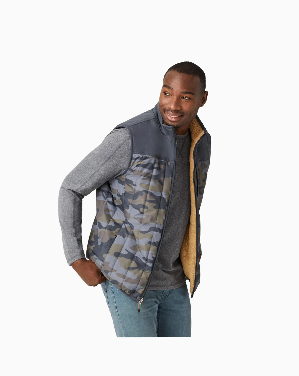 Go sleeveless and experience the outdoors with the versatility of a vest that can be worn two ways! Packed full with our recycled REPREVE polyfill for superior warmth without the weight, it can be reversed to a rugged sherpa side for a whole new look. Perfect for days where you need extra warmth.