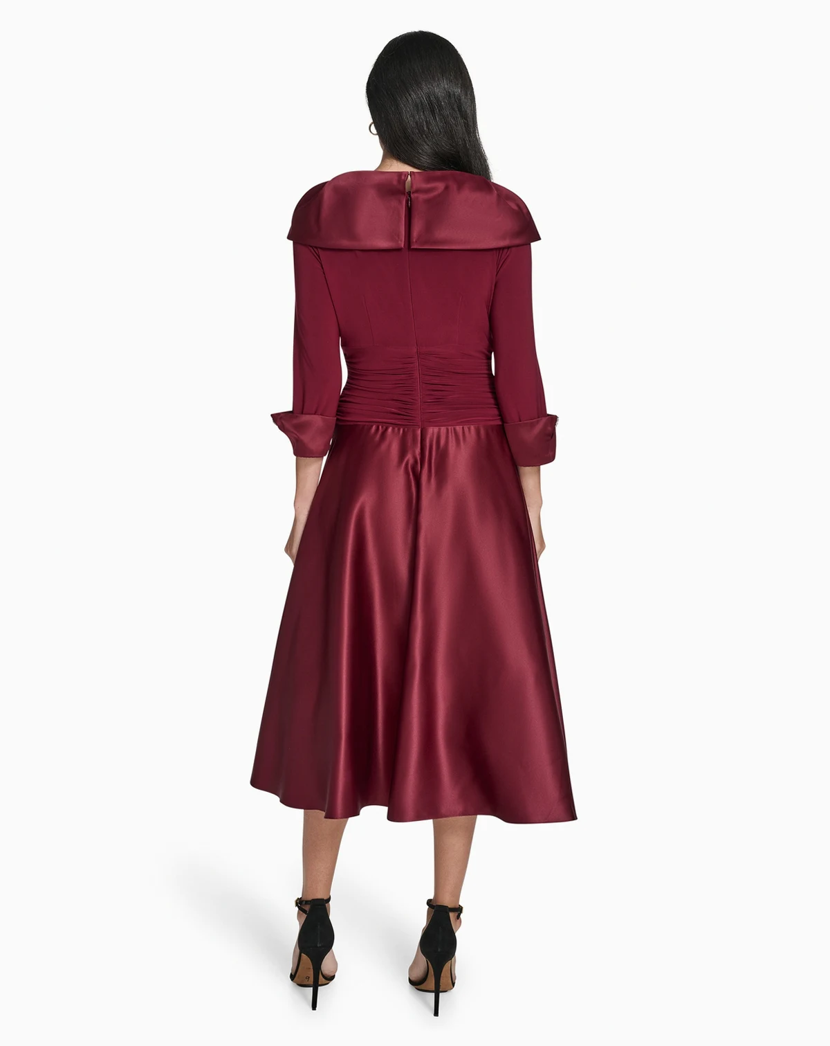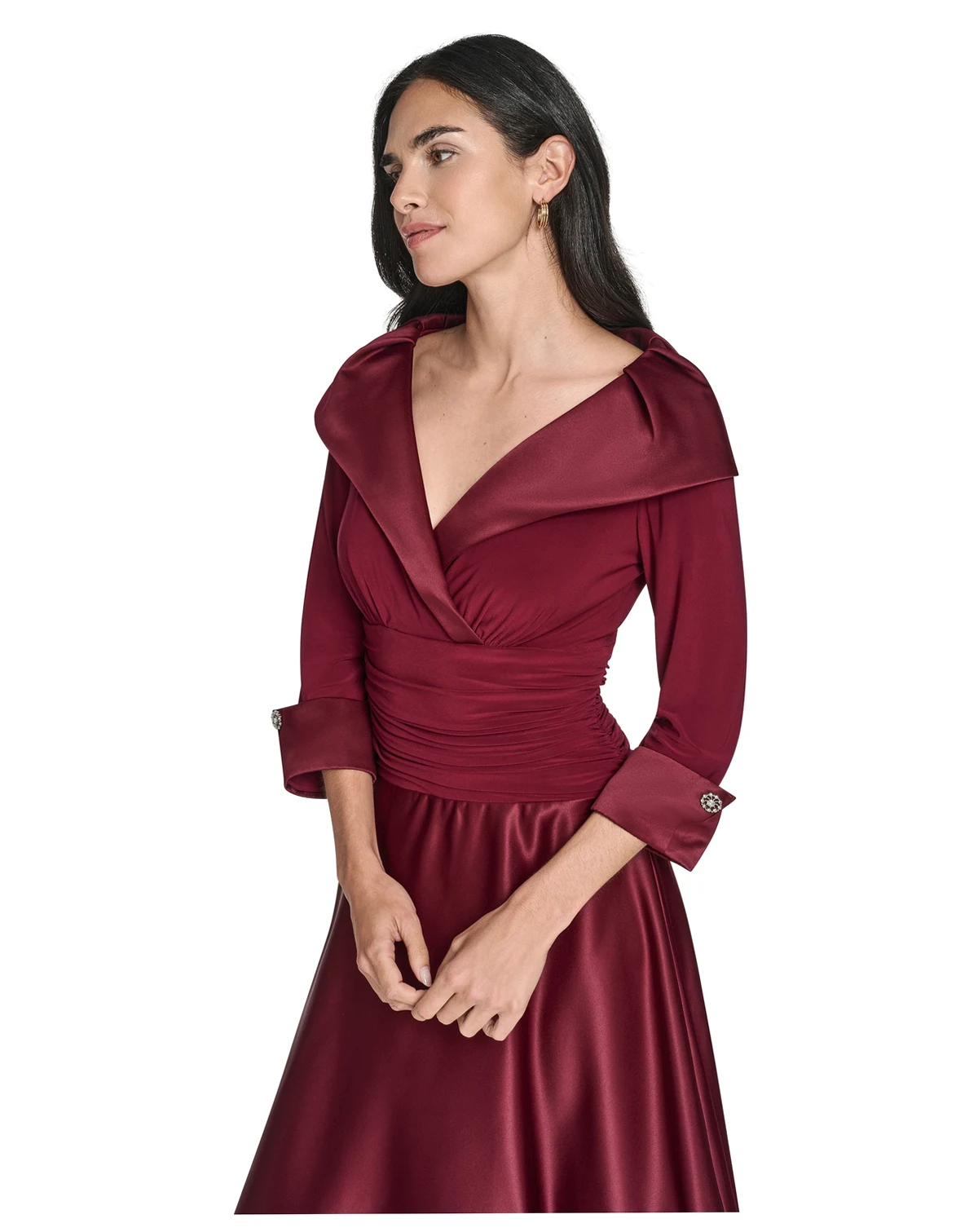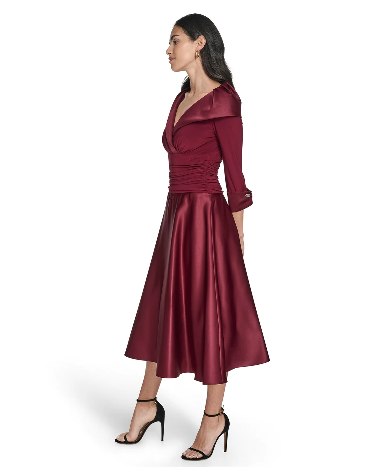 Elevating your cocktail attire, this Jessica Howard dress presents a graceful V-neckline and sophisticated 3/4-sleeve design. The elegant silhouette is perfect for making a statement at parties and special events.