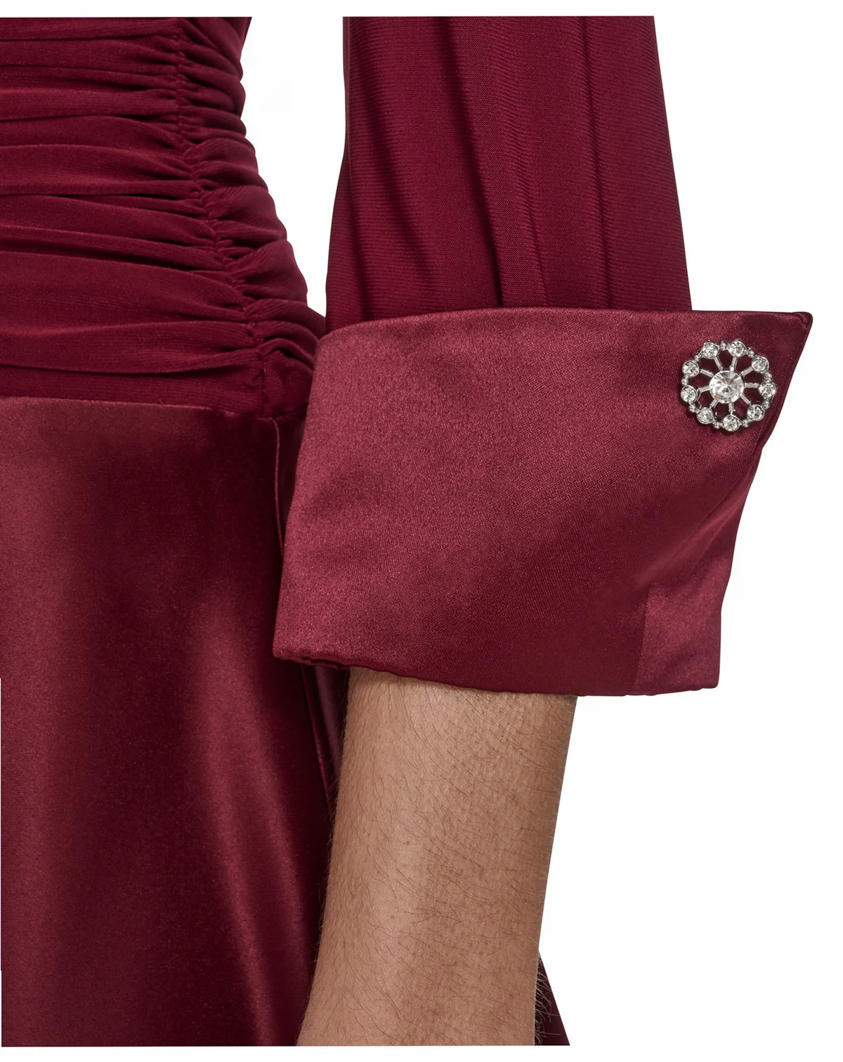 Top: 95% polyester, 5% spandex; skirt, cuff, collar, & lining: 100% polyester