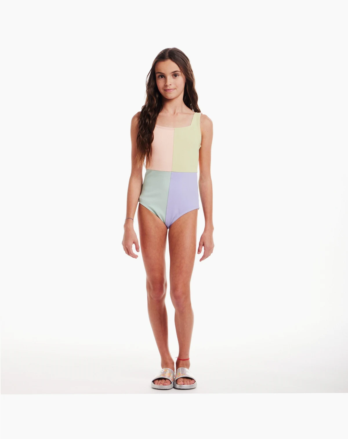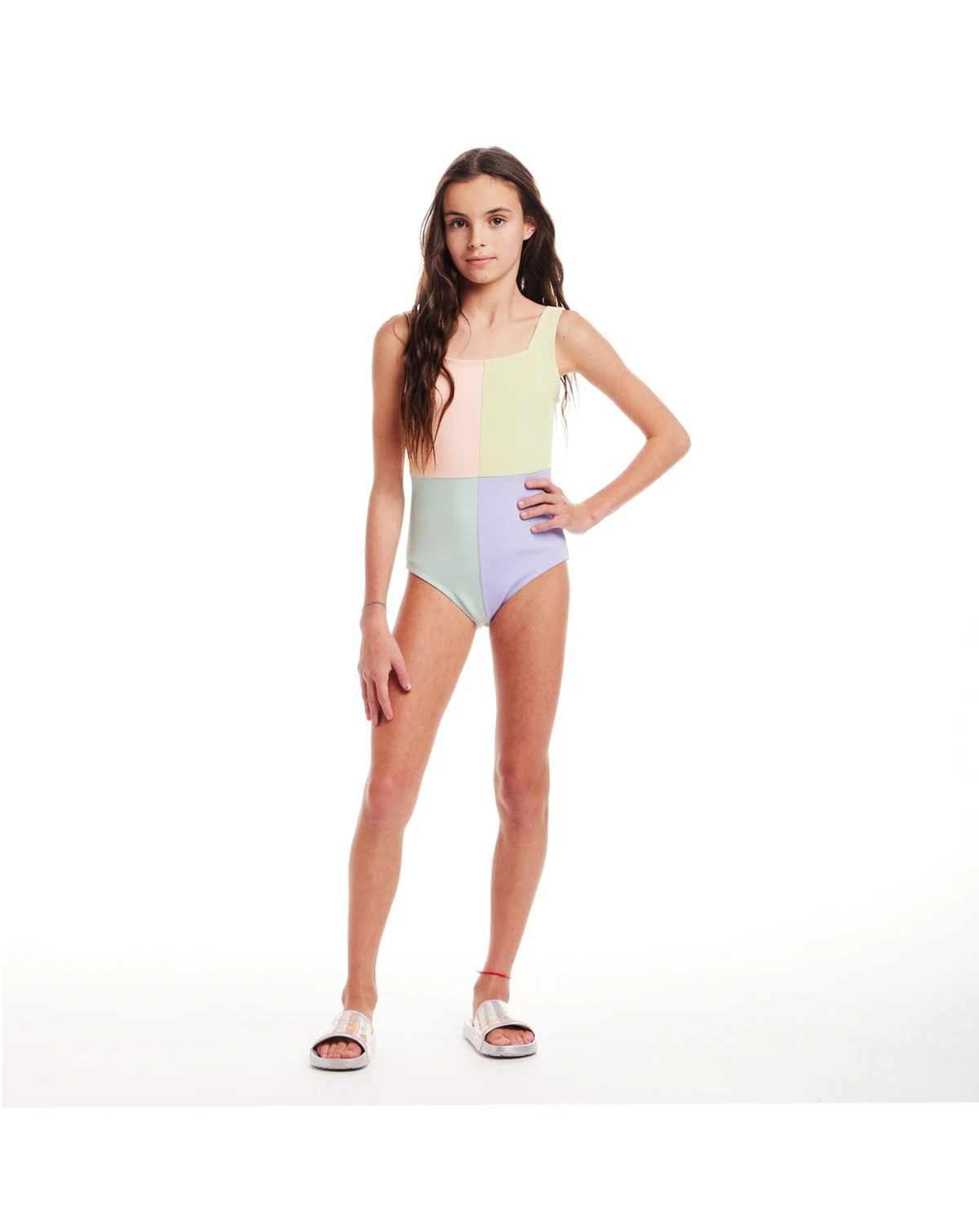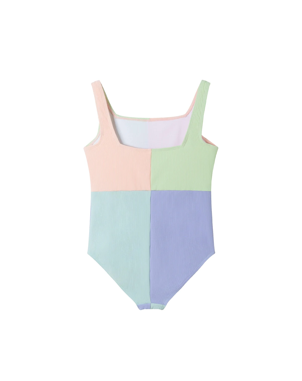 Make her swim days effortlessly stylish with this pastel color-block one-piece swimsuit! Featuring soft, soothing hues and a textured design, this swimsuit combines elegance with comfort. Perfect for sunny beach outings or fun poolside adventures!