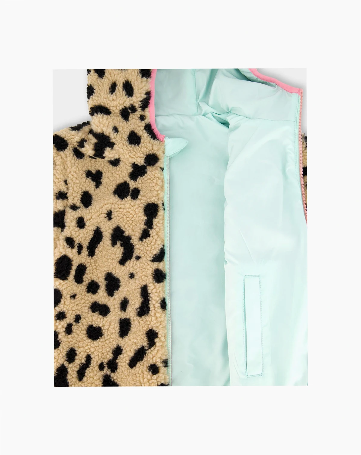 Reversing from polyurethane-coated oxford to animal print sherpa fabric, this mid-season outerwear offers a double dose of versatility. Detailed with a zip front closure, pockets on both sides, and an attached hood, the solid side of this reversible jacket is dirt-repellent and waterproof, making it perfect for wearing on chilly, wet days.