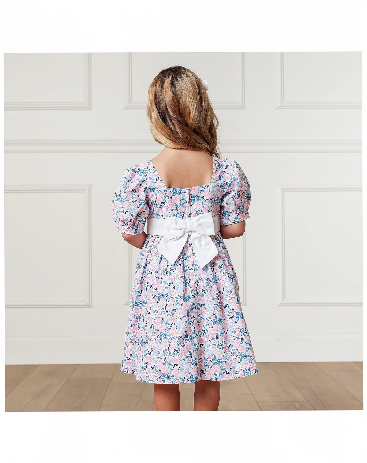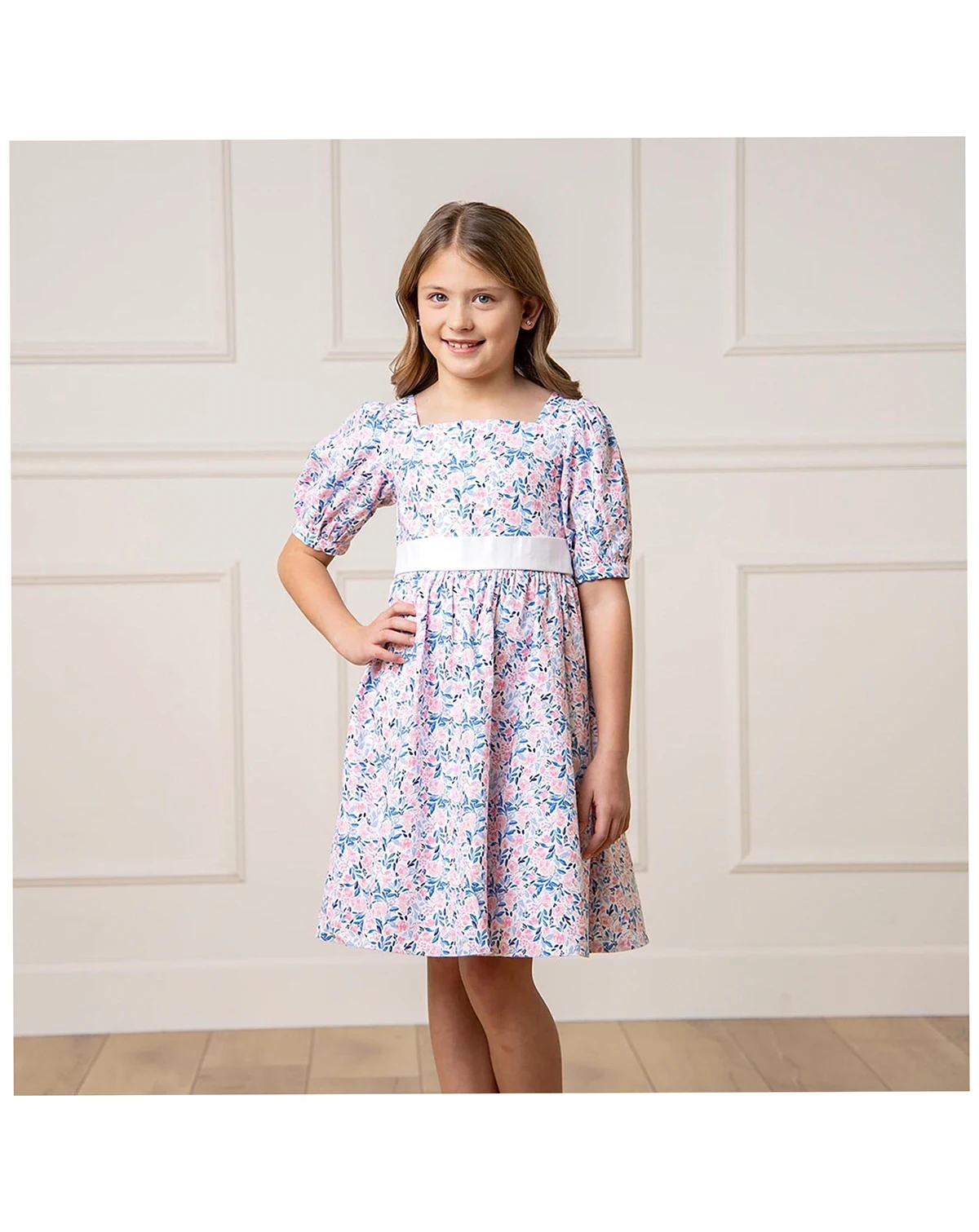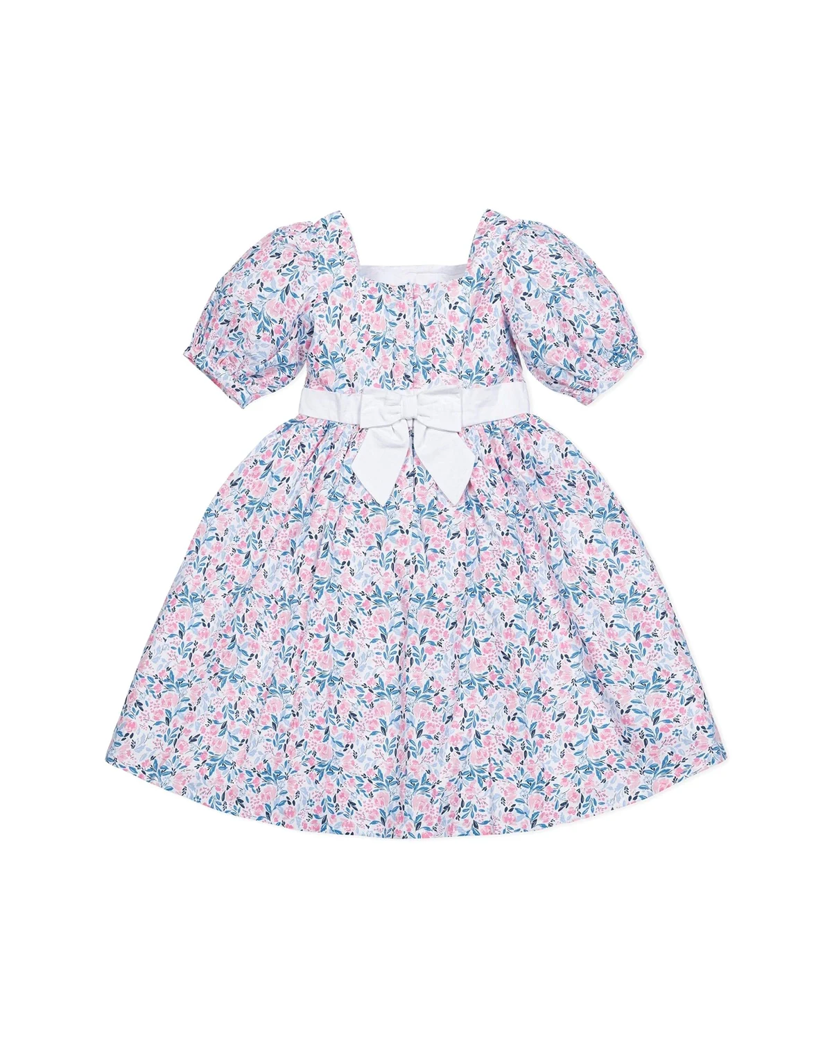 Our gorgeous puff sleeve party dress in soft organic cotton has all the incredible details that make it perfect for everything from dinner with the family to twirling on a dance floor. Features beautiful puff sleeves, waist sash with bow, and a button closure at the center back. A showstopper!