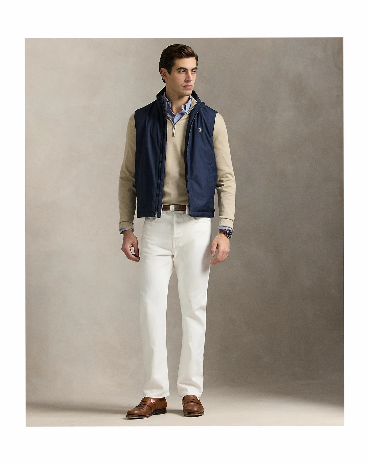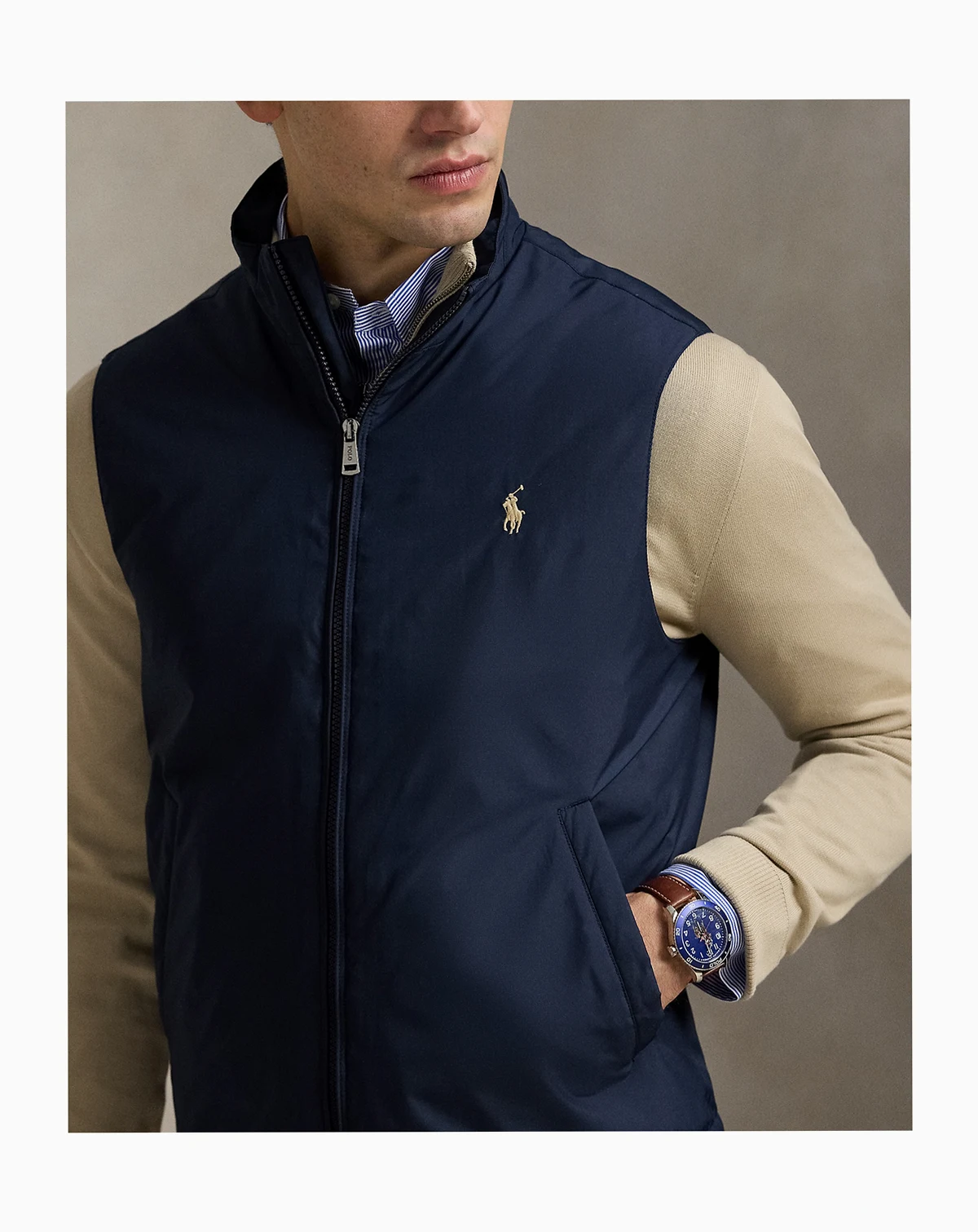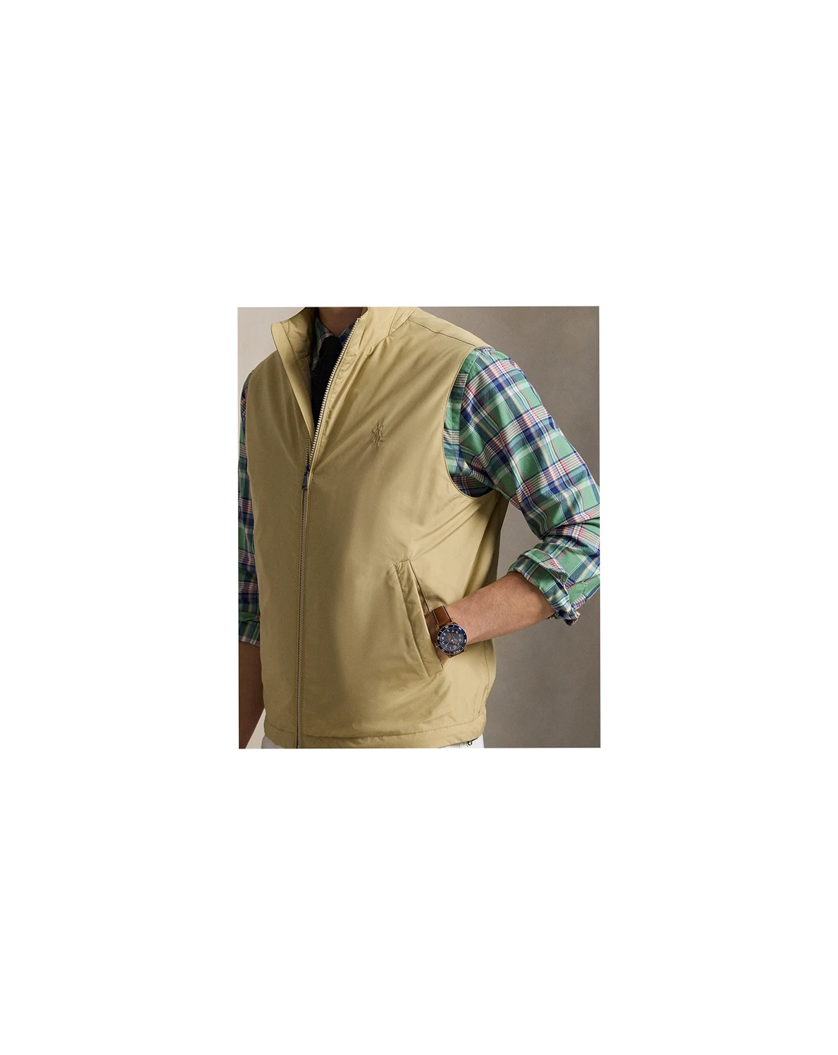 Perfect for travel and on-the-go lifestyles, this Polo Ralph Lauren vest packs into its own pocket and can attach to the handle of a suitcase once stored. It is made from water-repellent fabric and insulated with down-alternative fill.