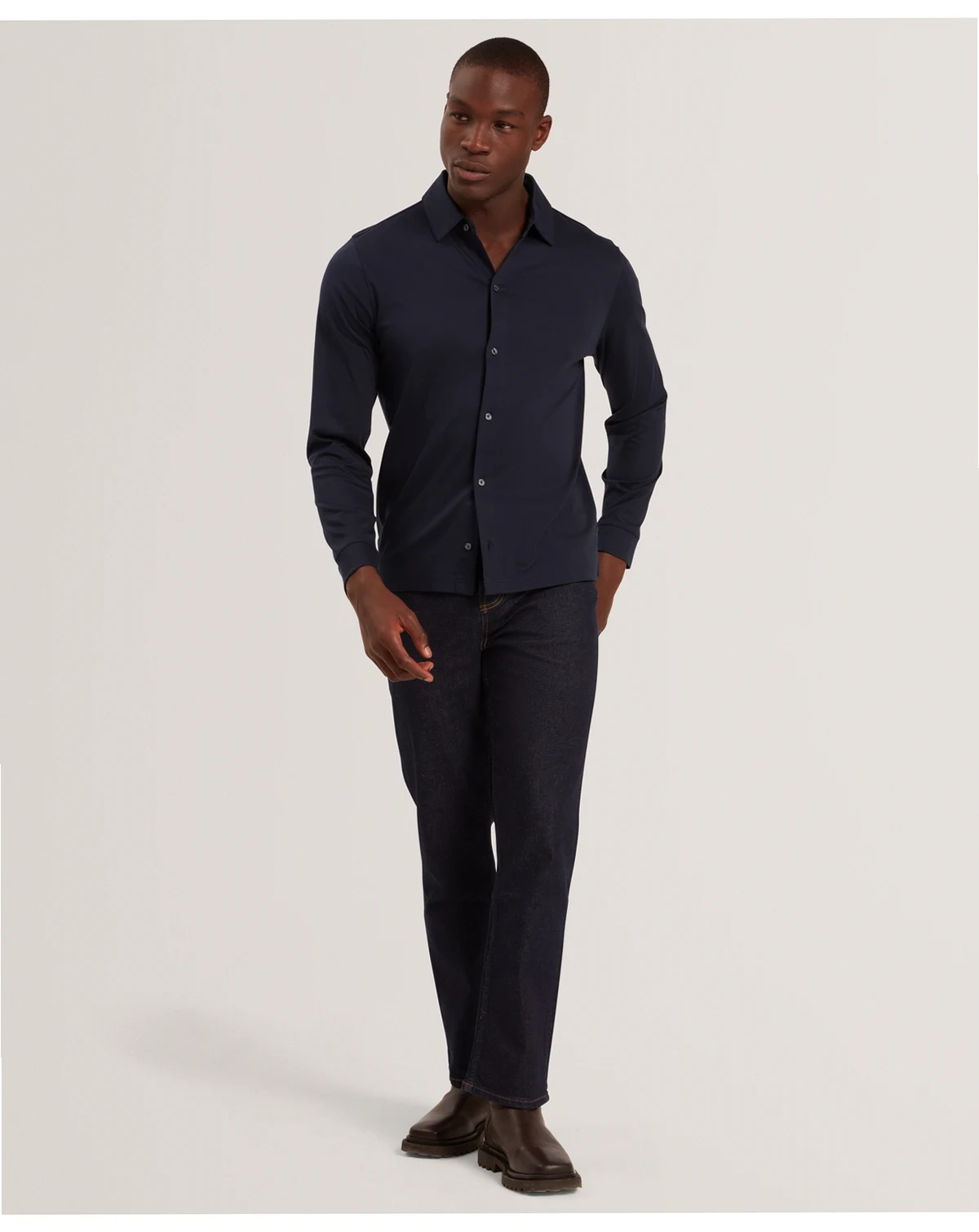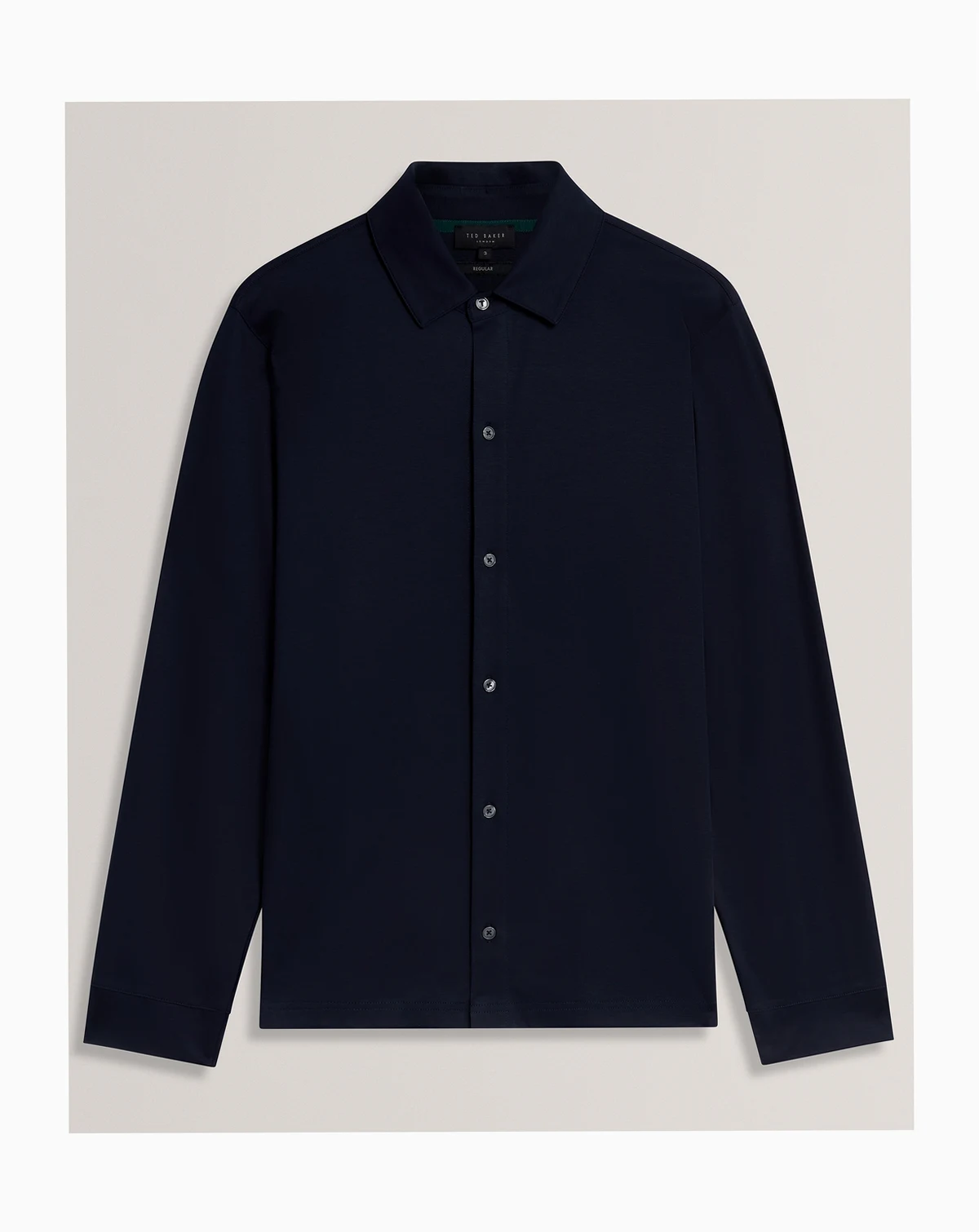 Offering a soft touch and a regular fit, this Ted Baker jacket features long sleeves for comfortable coverage. A covered button placket creates a clean and polished front closure.
