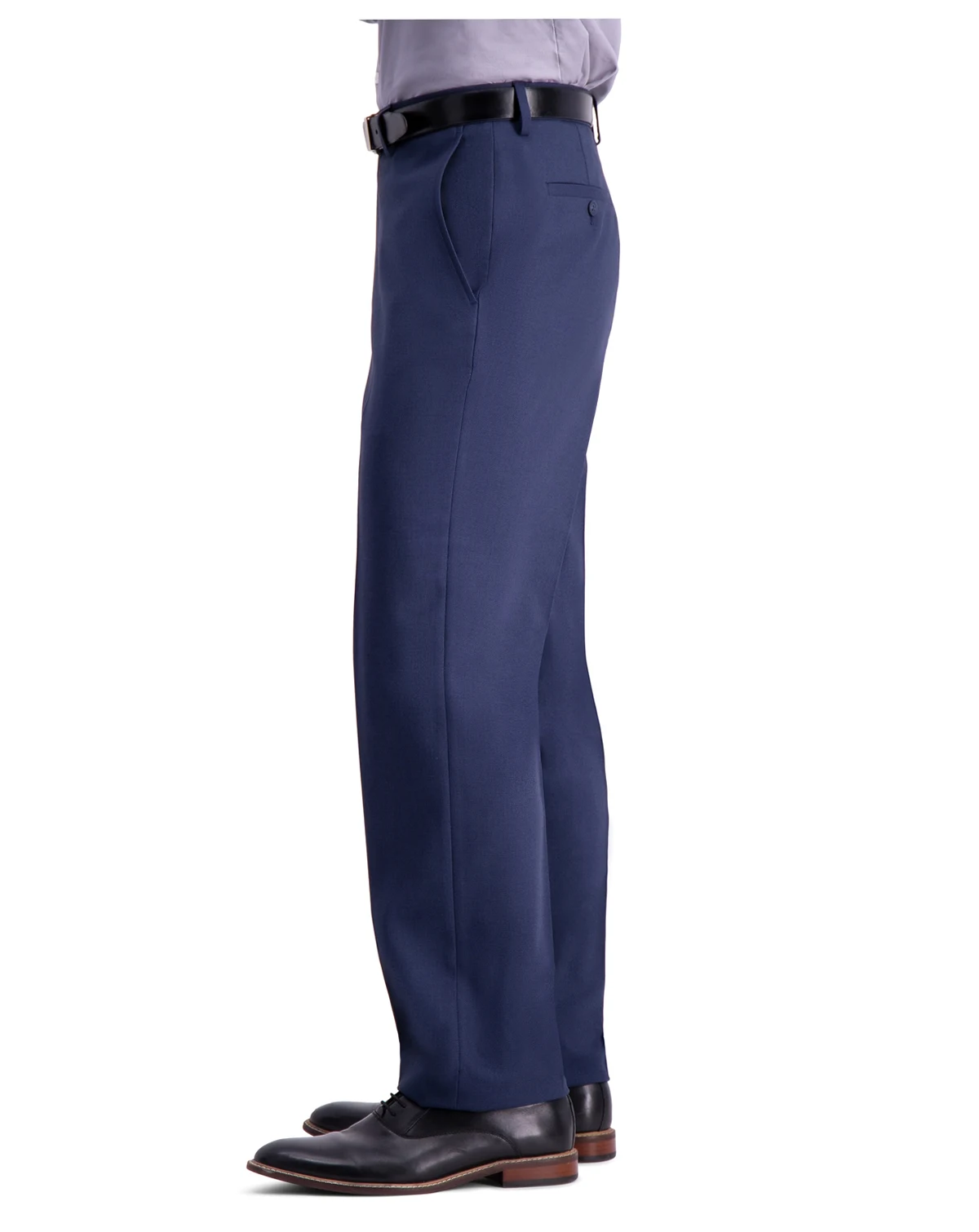 Stay sharp on the move with Haggar's Travel Performance suit separates pant crafted for all-day comfort and effortless polish. Designed with a flex waistband, tailored flat-front silhouette, and hook-and-bar closure, it features off-seam front pockets. The moisture-wicking, wrinkle-resistant fabric ensures you look fresh and put-together from morning meetings to evening events.