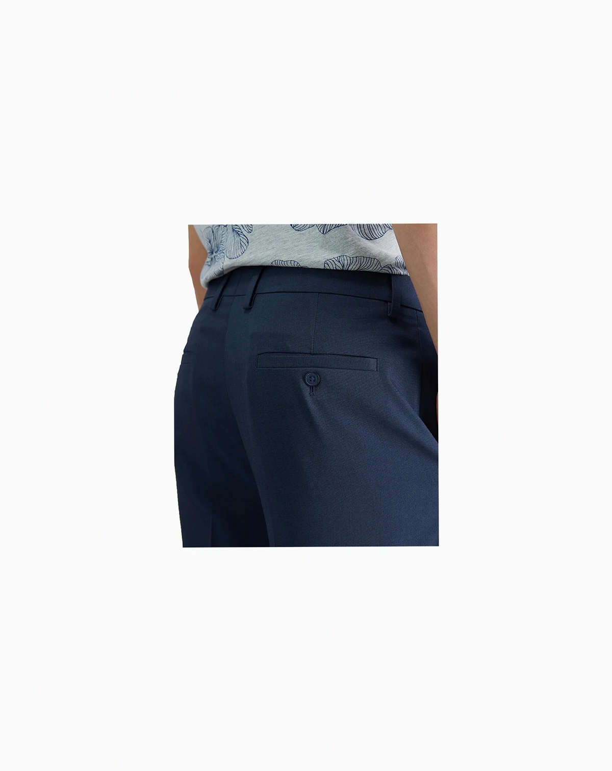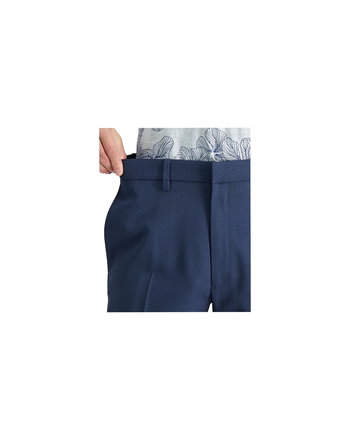 Tailored fit pants sit at or below the waist; straight throughout the hip and thigh