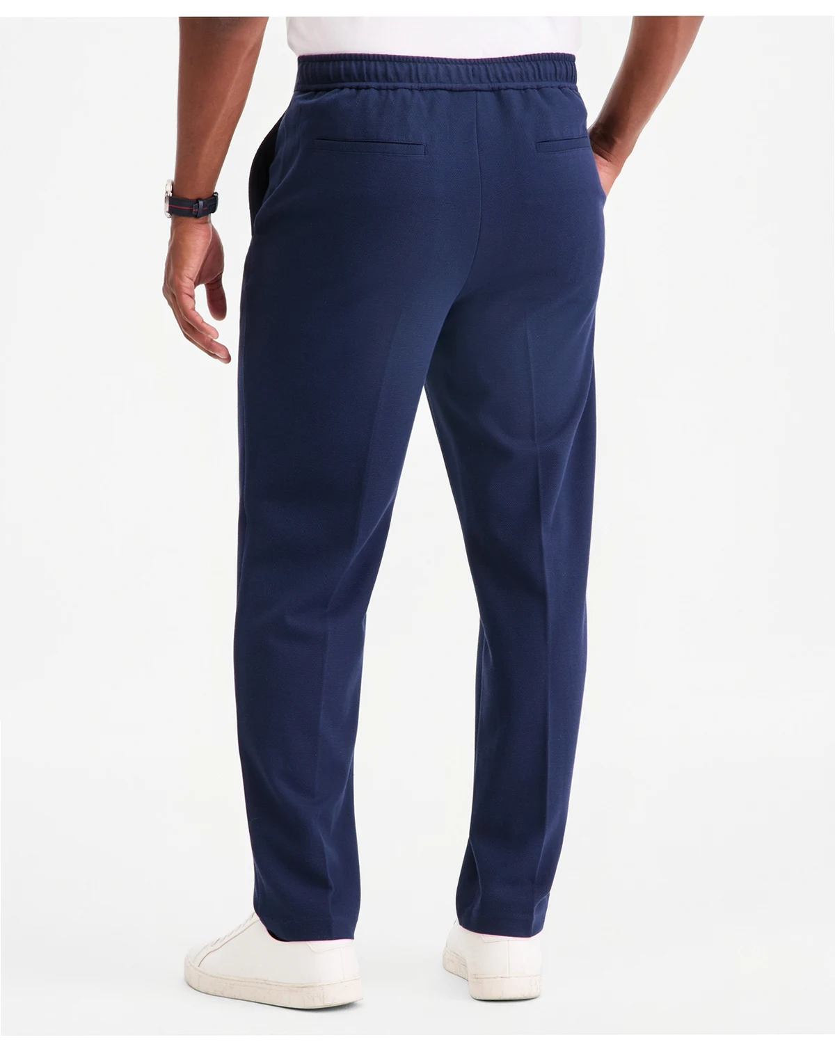 Suiting polish meets lasting comfort in these Alfani pants, in textured knit with stretch at the back waist.
