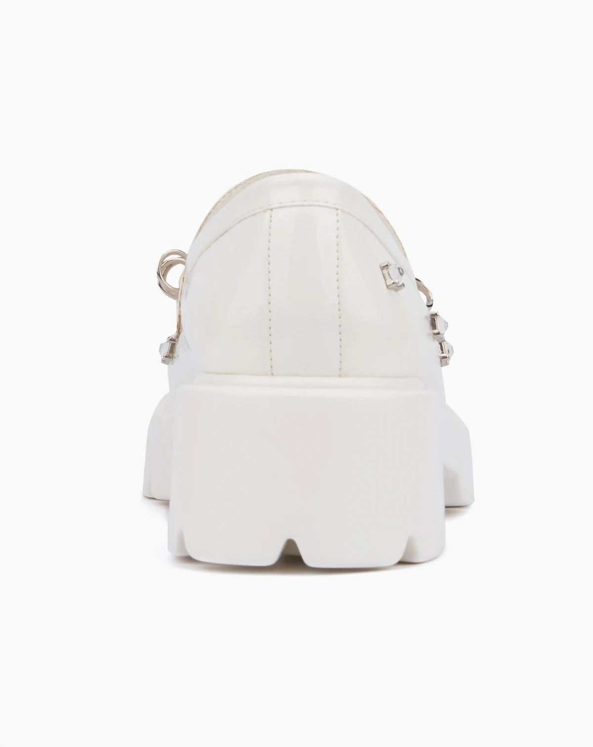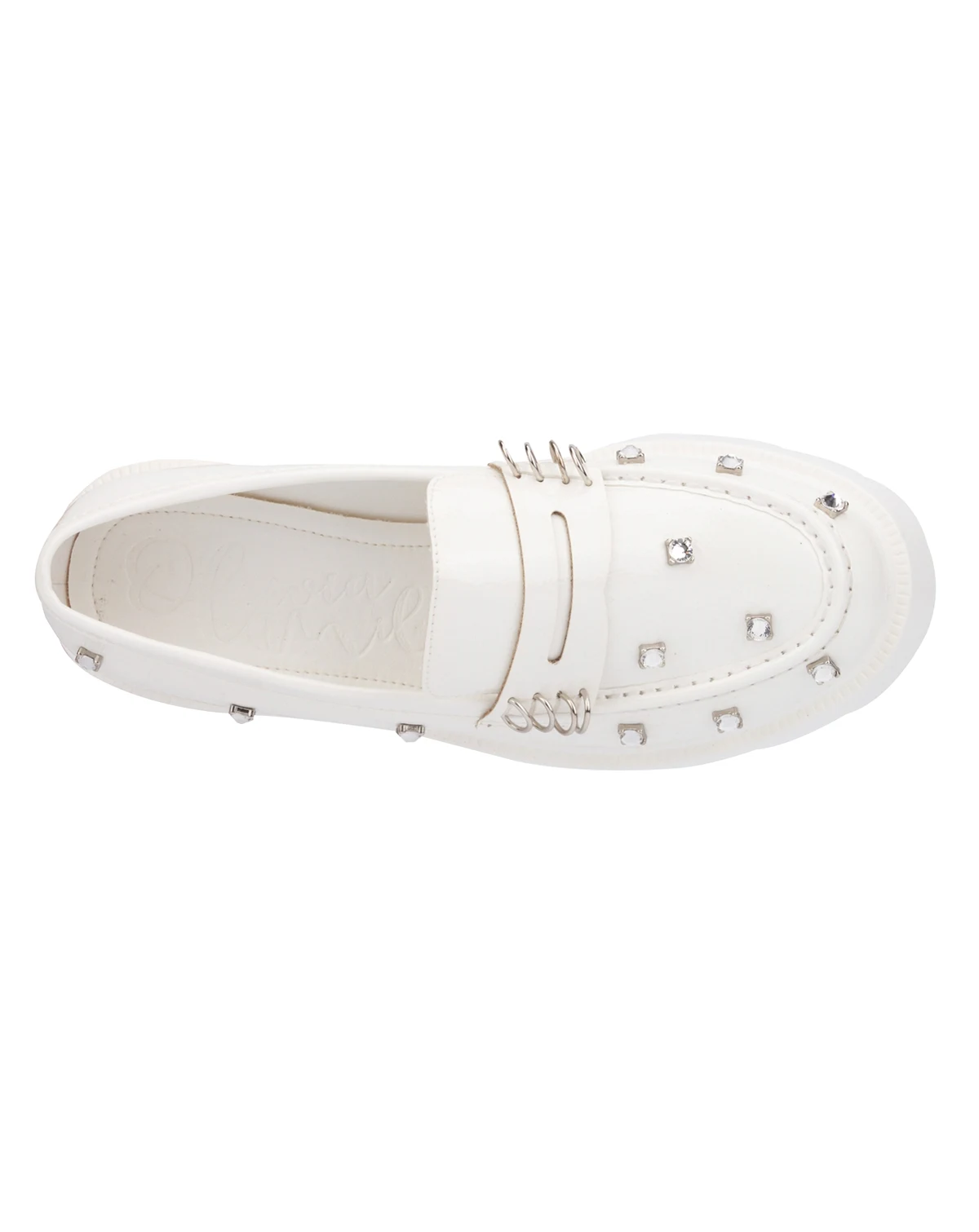 Elevate your classic style with a touch of chic in the Luscious lug sole loafer. This timeless shoe features ring hardware and shimmering gemstones that add a sophisticated flair. Perfectly complementing jeans, it offers an unexpected twist to casual attire. Whether for a laid-back day or a casual evening out, the Luscious ensures you step out with elegance and individuality, blending classic craftsmanship with contemporary charm for a look that stands out effortlessly.