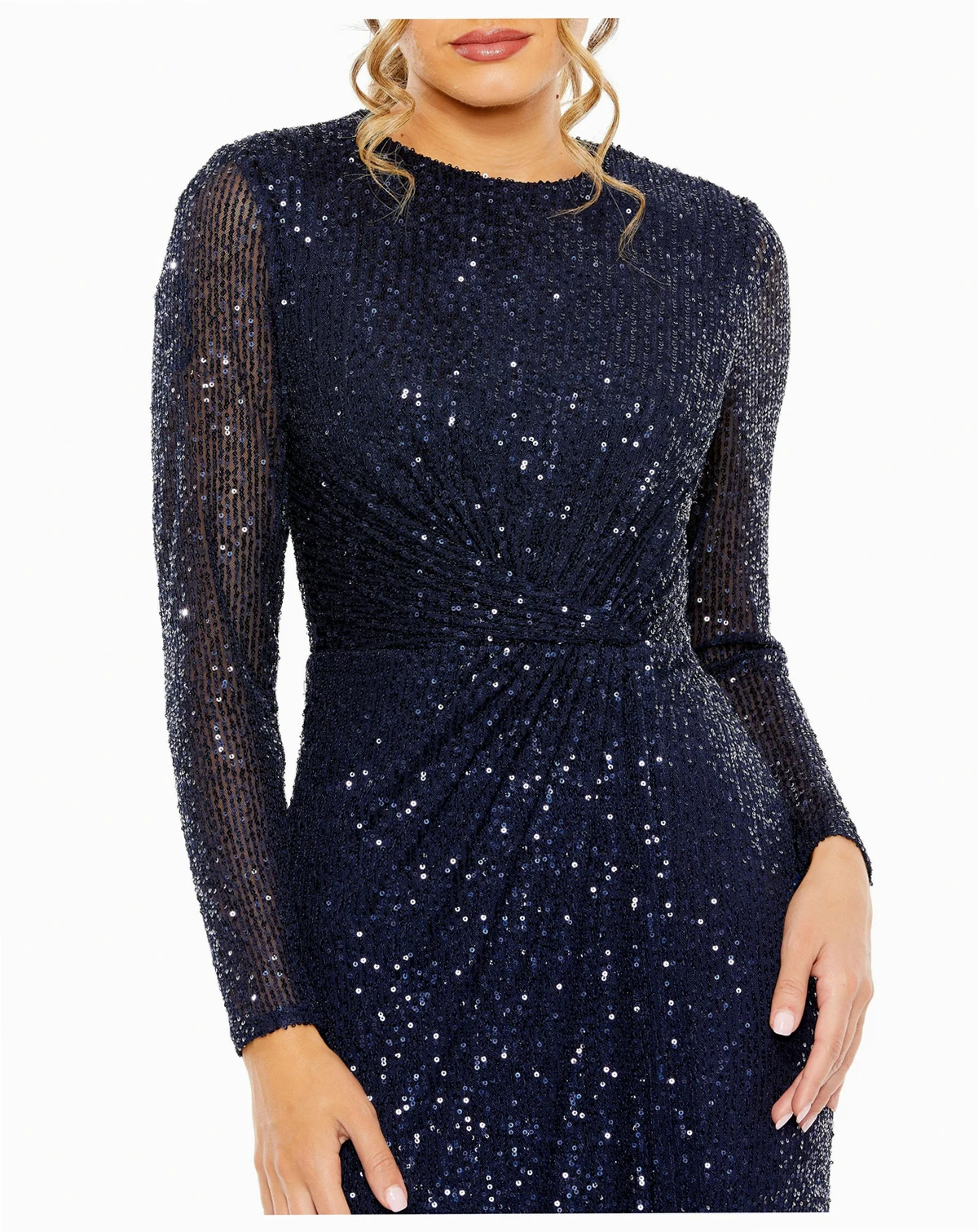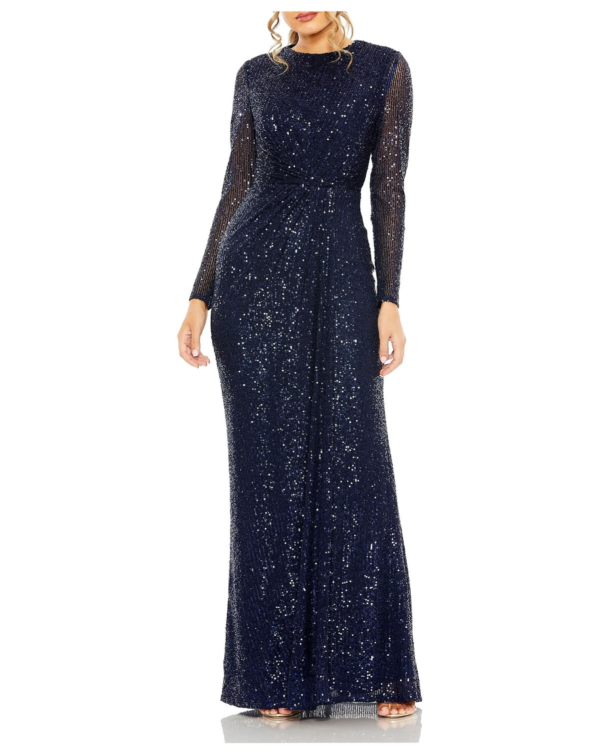 Women's Long Sleeve Sequin Column Gown with Side Knot