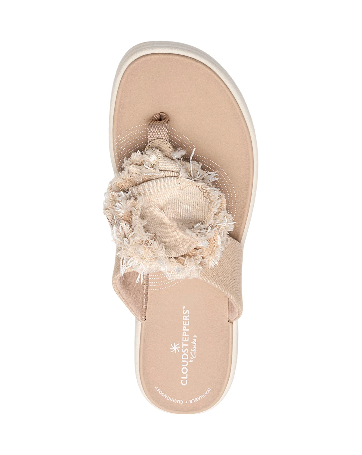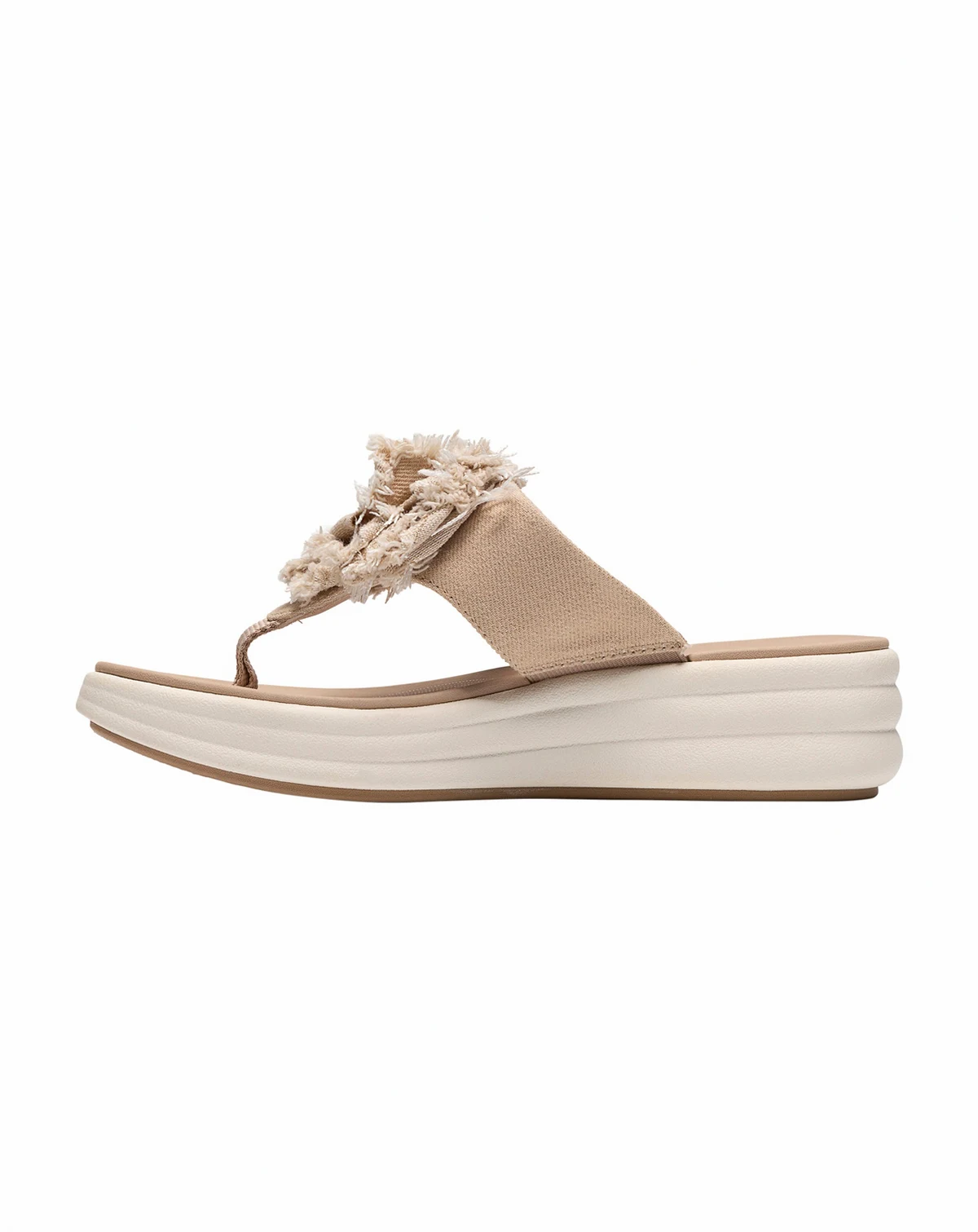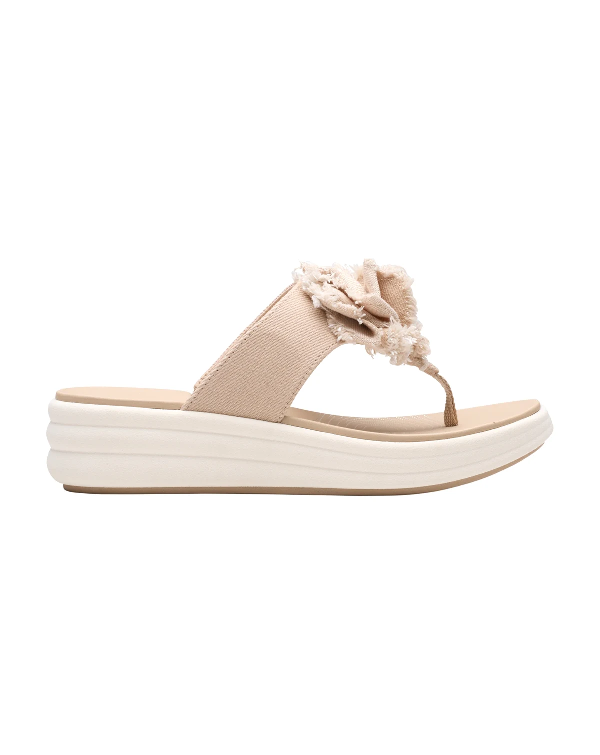A comfortable flip-flop with an easy-walk wedge heel, Drift Rose is the ultimate casual pick. We've crafted it in durable textiles, complete with elegant floral detailing. And, dialling up the comfort for all of your summertime plans, Clarks Cloudsteppers Cushion Soft™ footbed and a flexible TPR (thermoplastic rubber) sole come together to deliver that feather-light Cloudsteppers feeling.