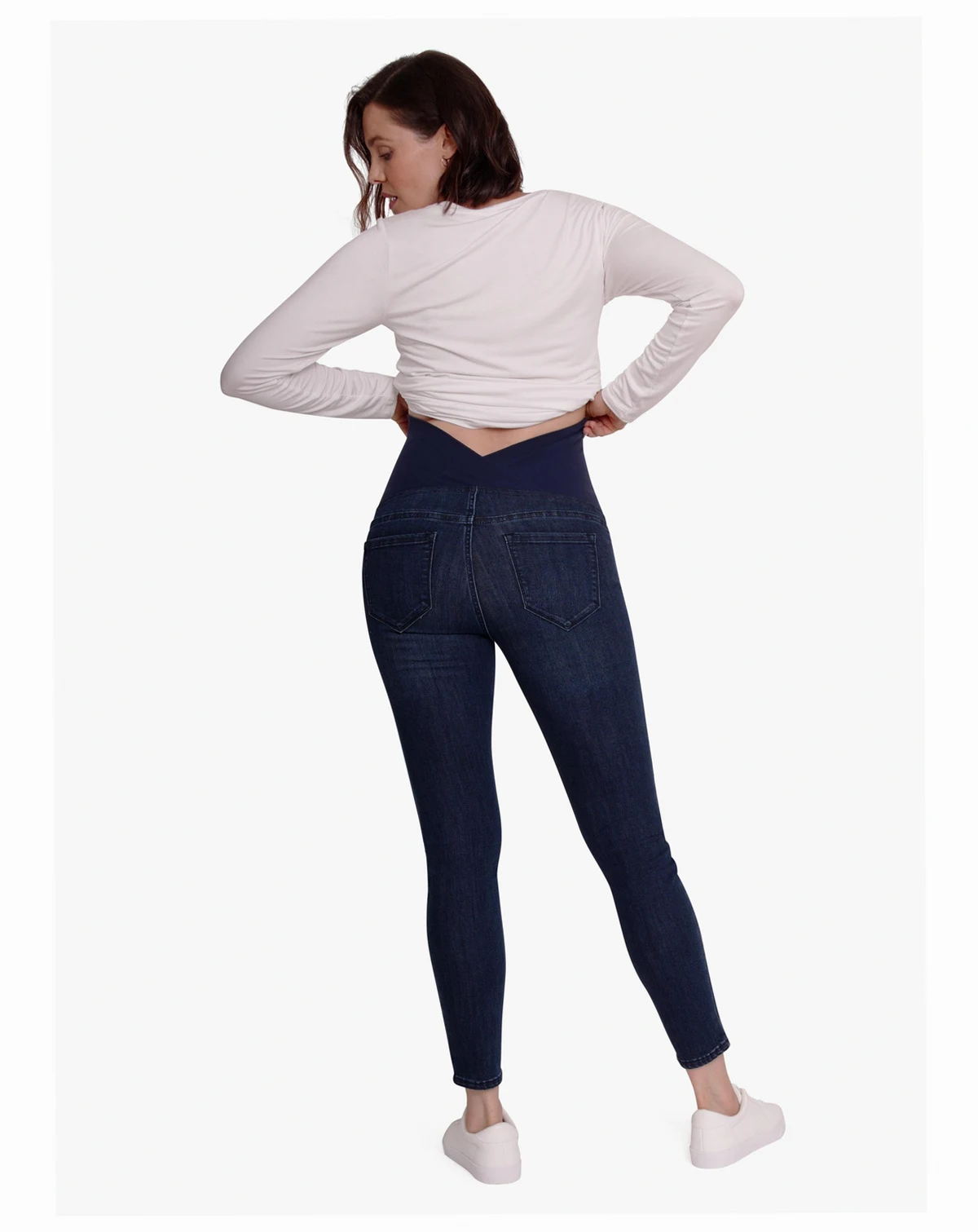 Fitted skinny jean with inseam of 29". Flat front pockets for smooth fit and functional back pockets.; Select your pre-pregnancy size.