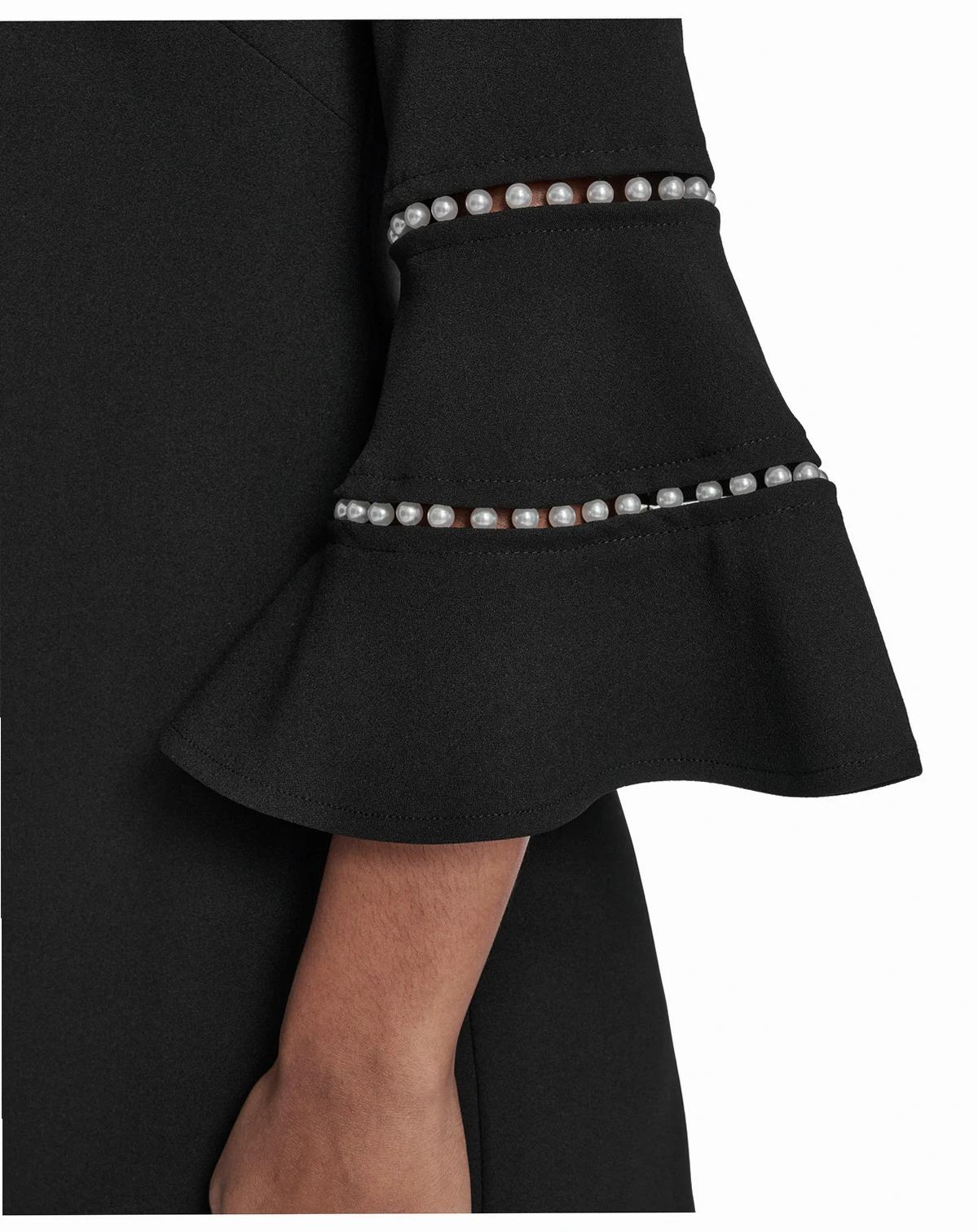 Exude elegance in this boat neck sheath from Jessica Howard, featuring bell sleeves adorned with delicate imitation-pearl trim. The graceful silhouette is both sophisticated and timeless for special occasions.