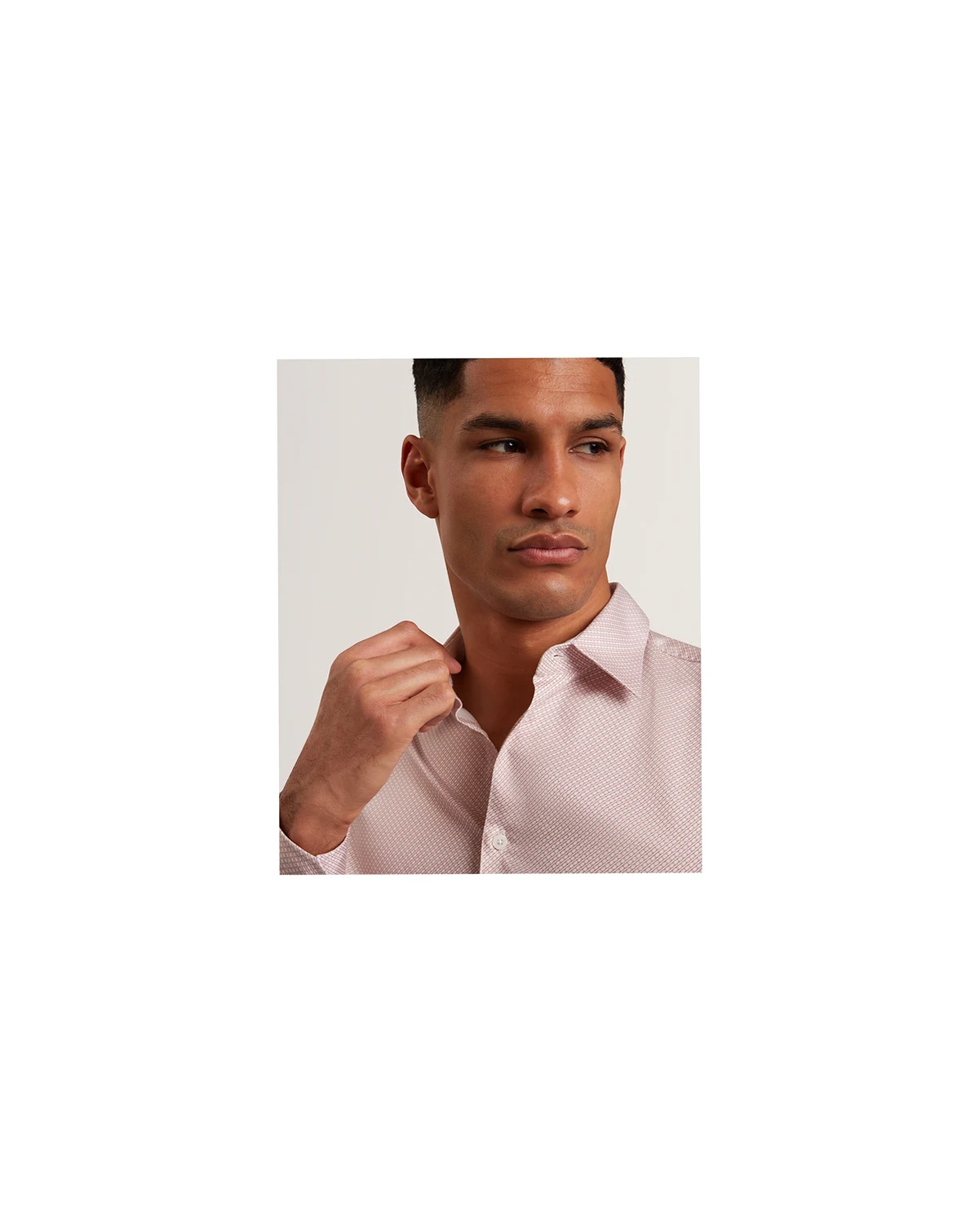Sharp patterns meet effortless comfort in this Ted Baker shirt, adorned with subtle geometric details. A spread collar and enhanced stretch make it ideal for semiformal occasions with a tailored feel.
