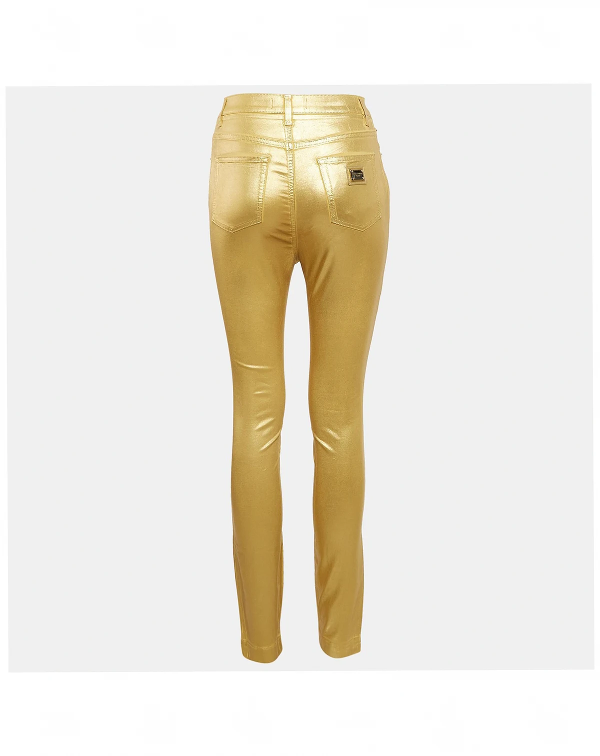 Women's Metallic Gold Coated Cotton Grace Skinny Pants