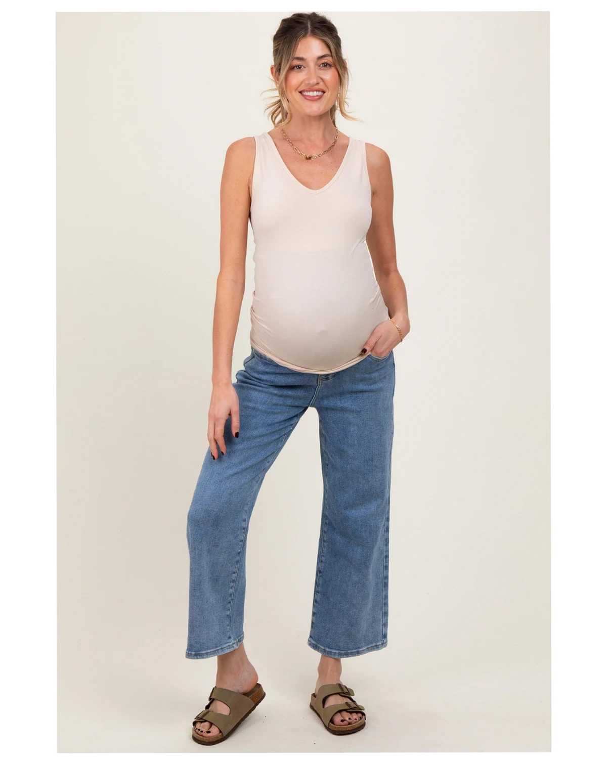 Step into effortless style and comfort with our Cropped Denim Maternity Jeans! Designed with your growing bump in mind, these jeans feature a super-soft, stretchy belly panel for a perfect fit through every trimester. The trendy cropped length makes them a breezy, versatile choice—pair with your favorite tee for a casual vibe or dress them up with a chic blouse. With classic five-pocket styling and a flattering slim silhouette, you ll feel confident and supported all day. These maternity jeans are the must-have staple for every mama-to-be!