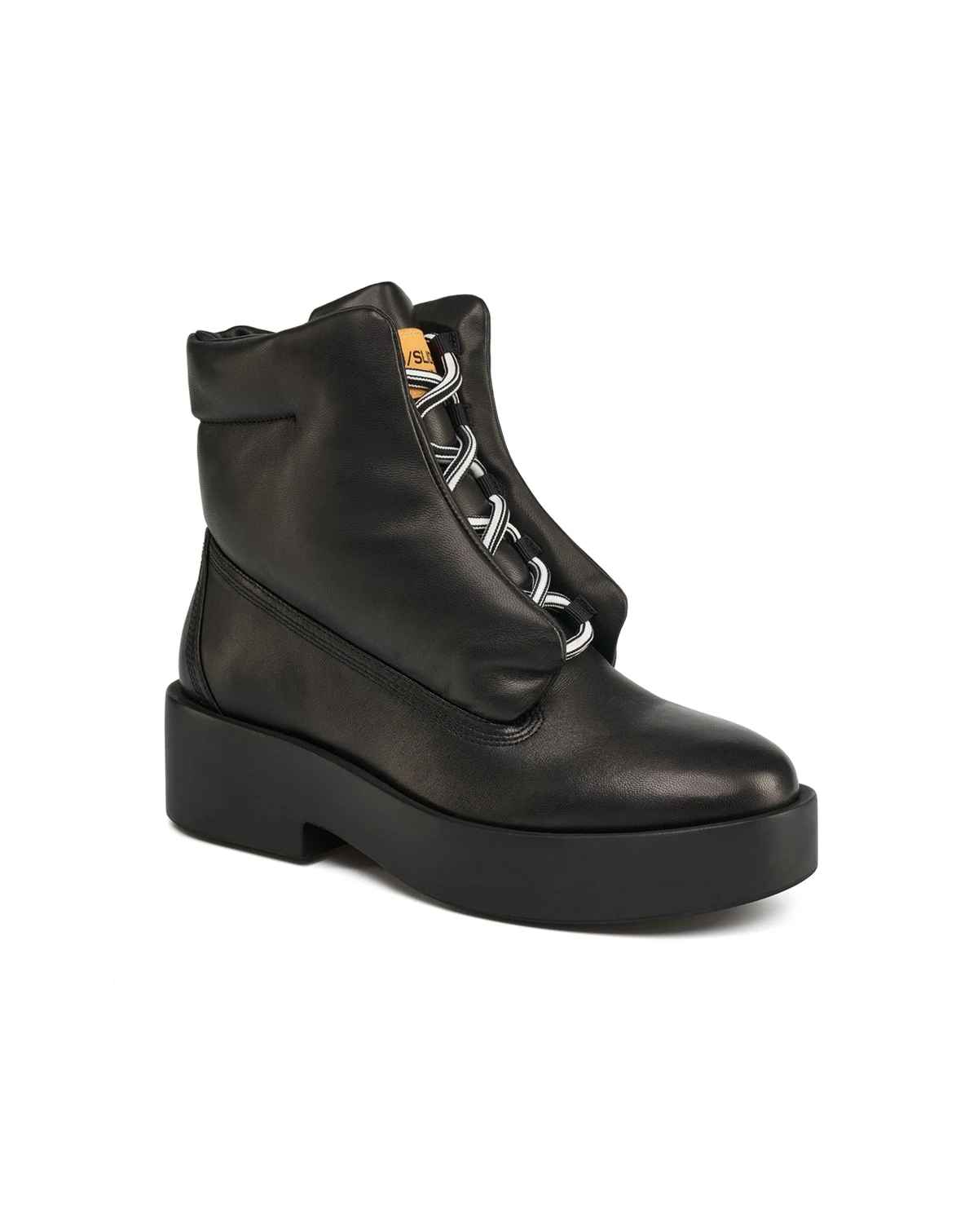 Elevate your everyday edge with this modern platform ankle boot in a sleek leather finish. The DARINA features a smooth upper with subtle stitching details and a bold black platform sole, this boot offers both standout style and all-day comfort. The lace-up design adds structure and attitude, while the chunky sole provides a fashionable lift and sturdy support.