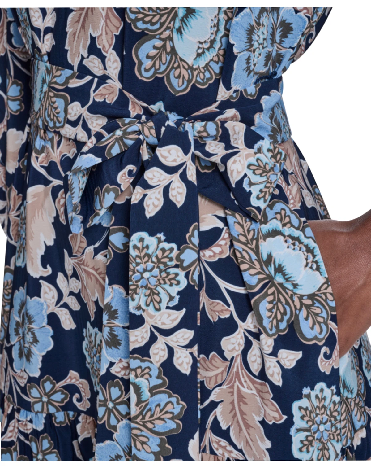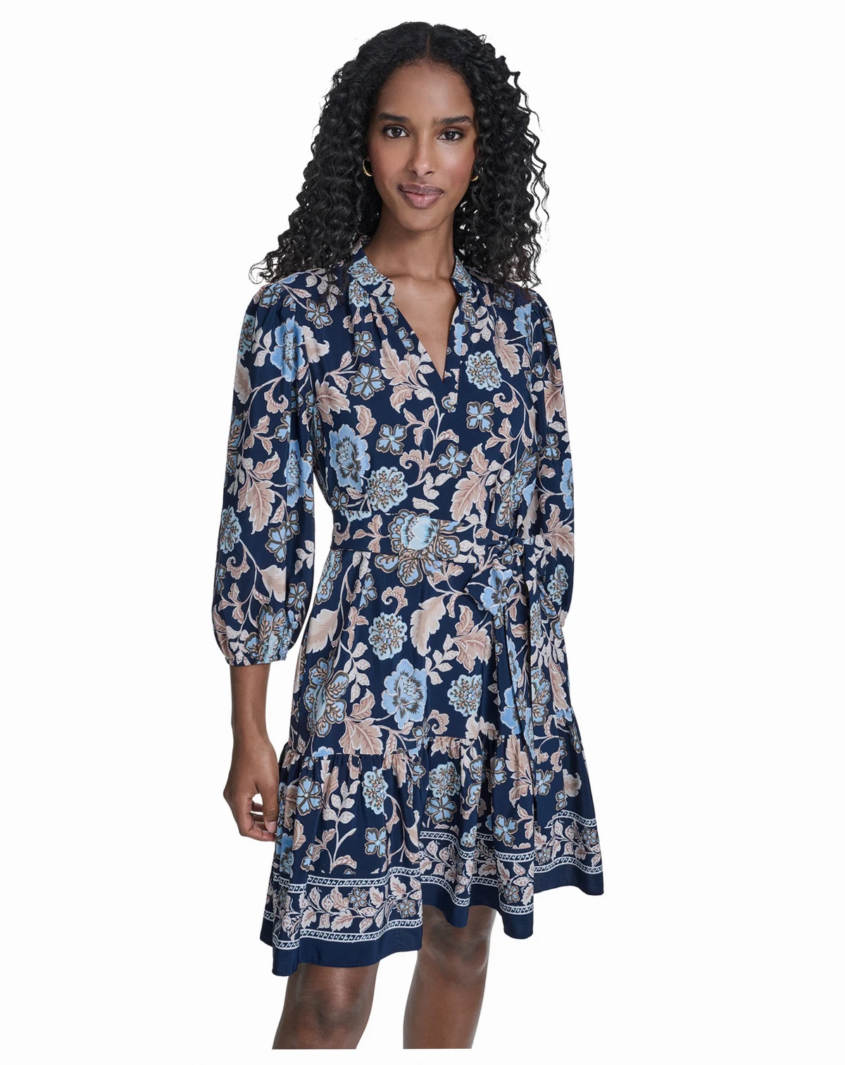 With its distinctive balloon sleeves and attached sash, this Jessica Howard dress creates a dramatic and feminine silhouette. The v-neck and side slip pockets add both style and functionality.