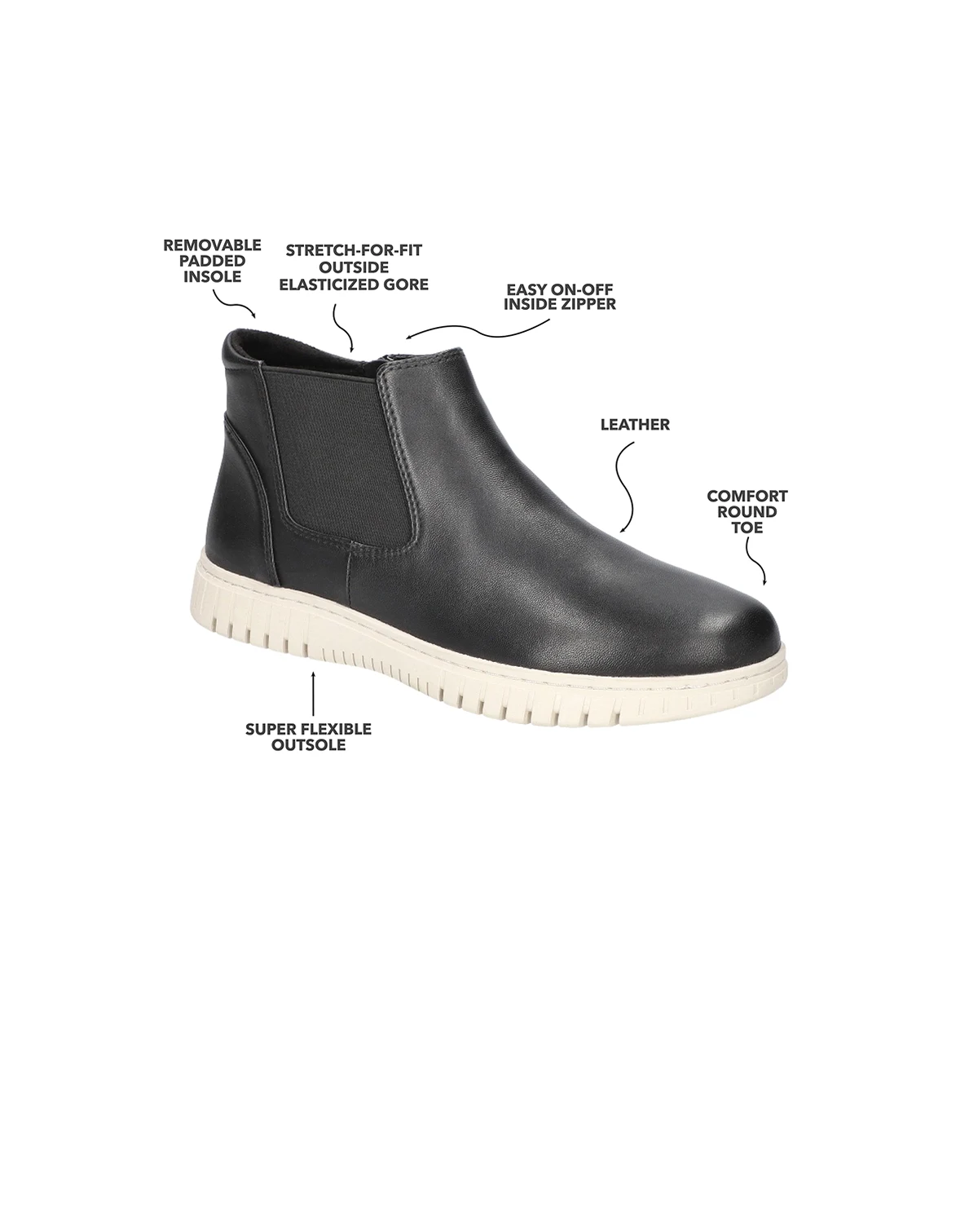 Experience the perfect blend of trendsetting design and comfort in our athleisure-inspired leather Kingly chelsea boot by Bella Vita. With stretch detailing that moves with you, these boots redefine casual sophistication. The removable padded insole provides unparalleled comfort, making these booties your new go-to choice for all your casual outings. Inside zipper for easy on/off.
