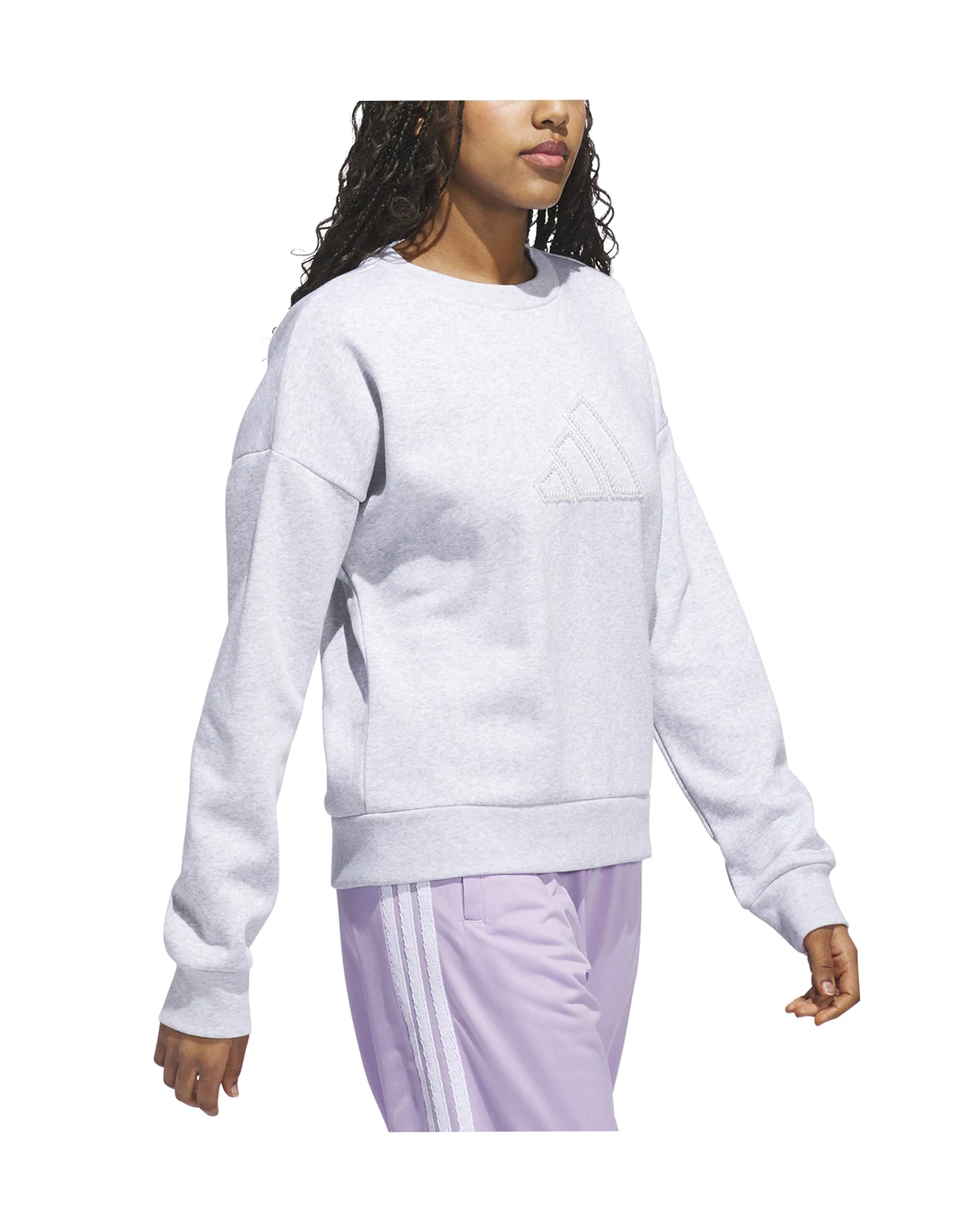 Dress up your laid-back look with this adidas sweatshirt, a cozy fleece classic polished with a faux-pearl logo.