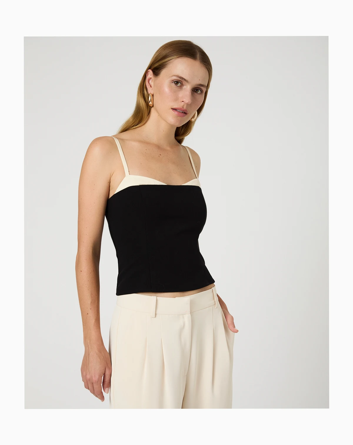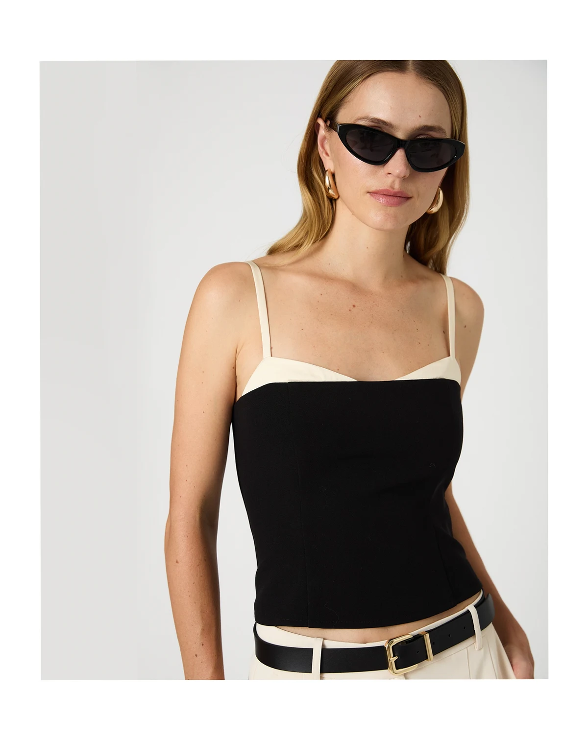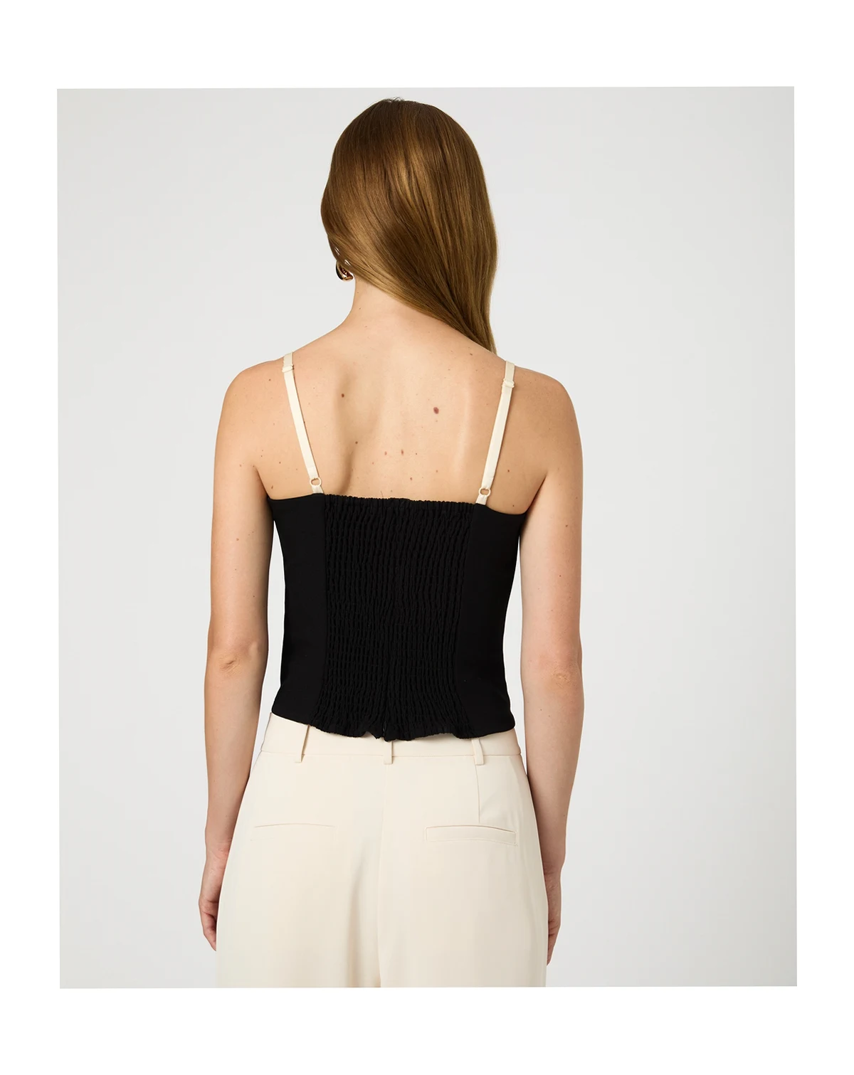 A flattering corset look lends endless charm to this women's top from French Connection.
