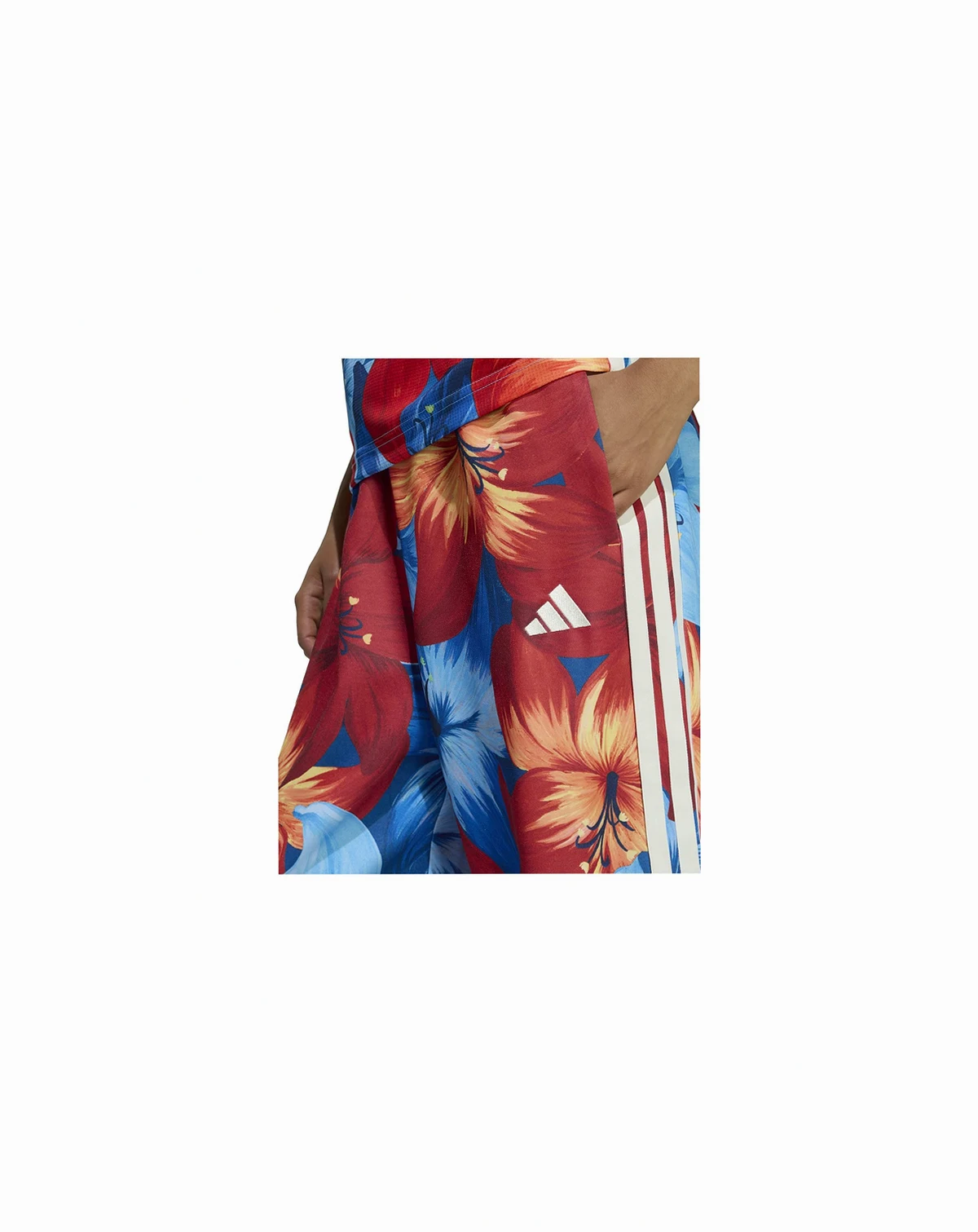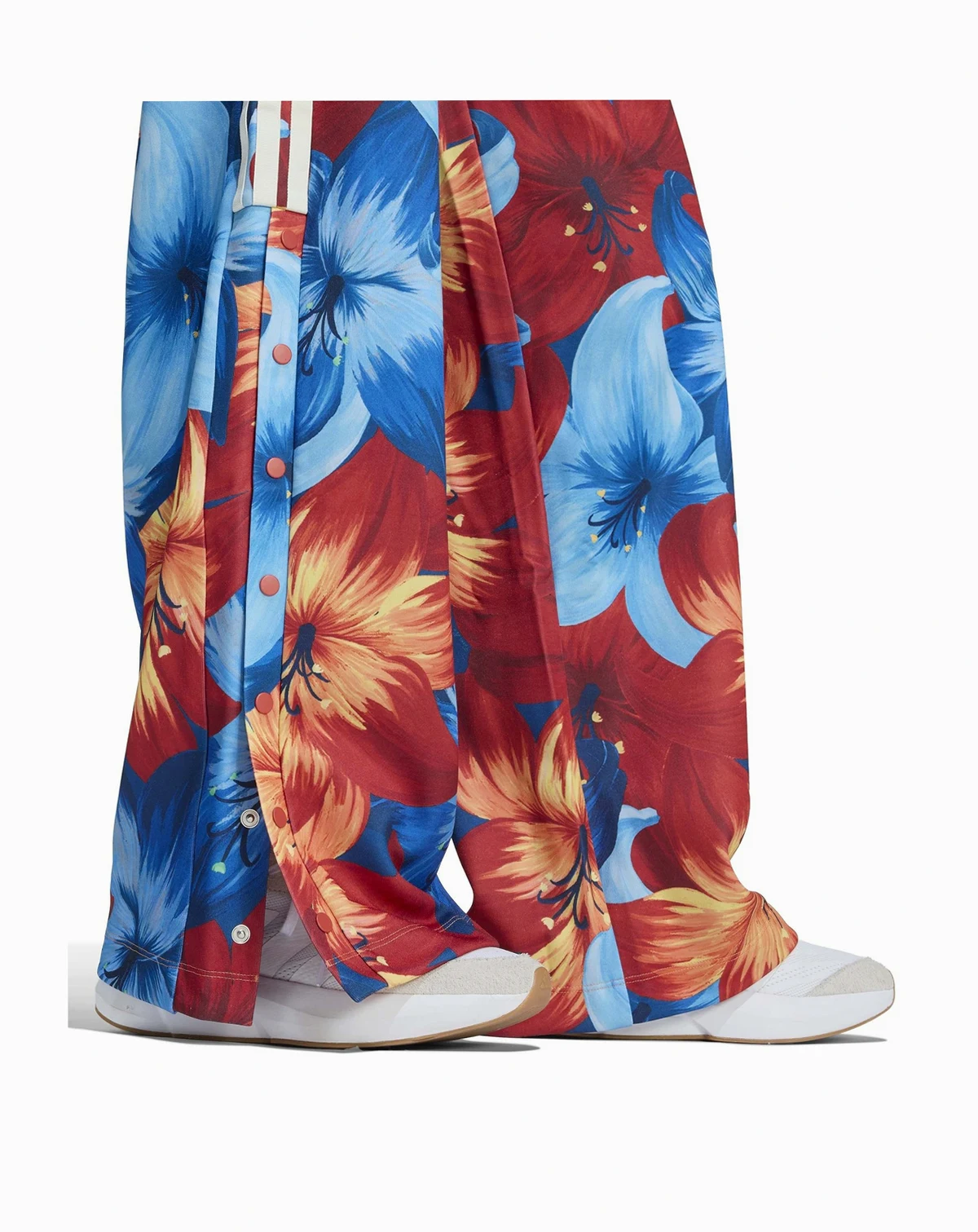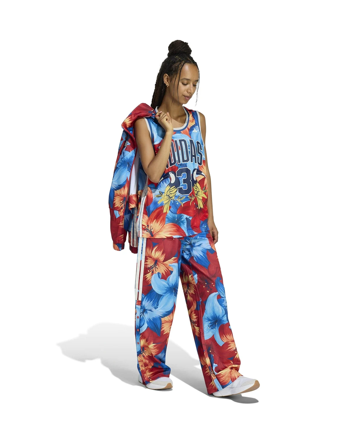 Approx. model height is 5'8" and she is wearing a size small; Full length; approx. inseam: 32"; loose fit; Drawstring waist; colorblock calf detail; flocky 3-stripes tape; embroidered logo; interlock knit fabric