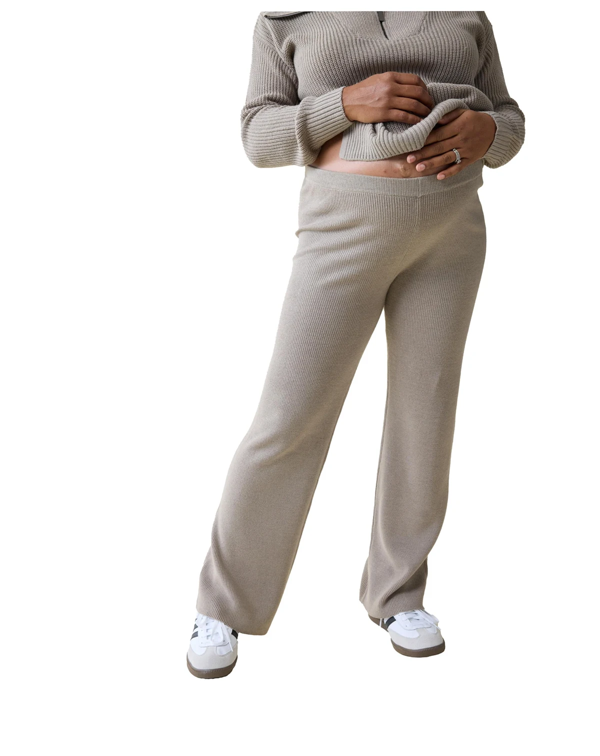 Let s get cozy. These laid-back maternity pants feature drapey wide legs and the softest, snuggliest sweater knit you ve ever felt. Done with a mid-rise, elastic waist that stretches with your bump without digging in, these pants are the kind of comfy you ll never want to take off. Top with the matching Cozy Quarter Zip Sweater or your favorite blouses or button-ups — they can be dressed up or down.