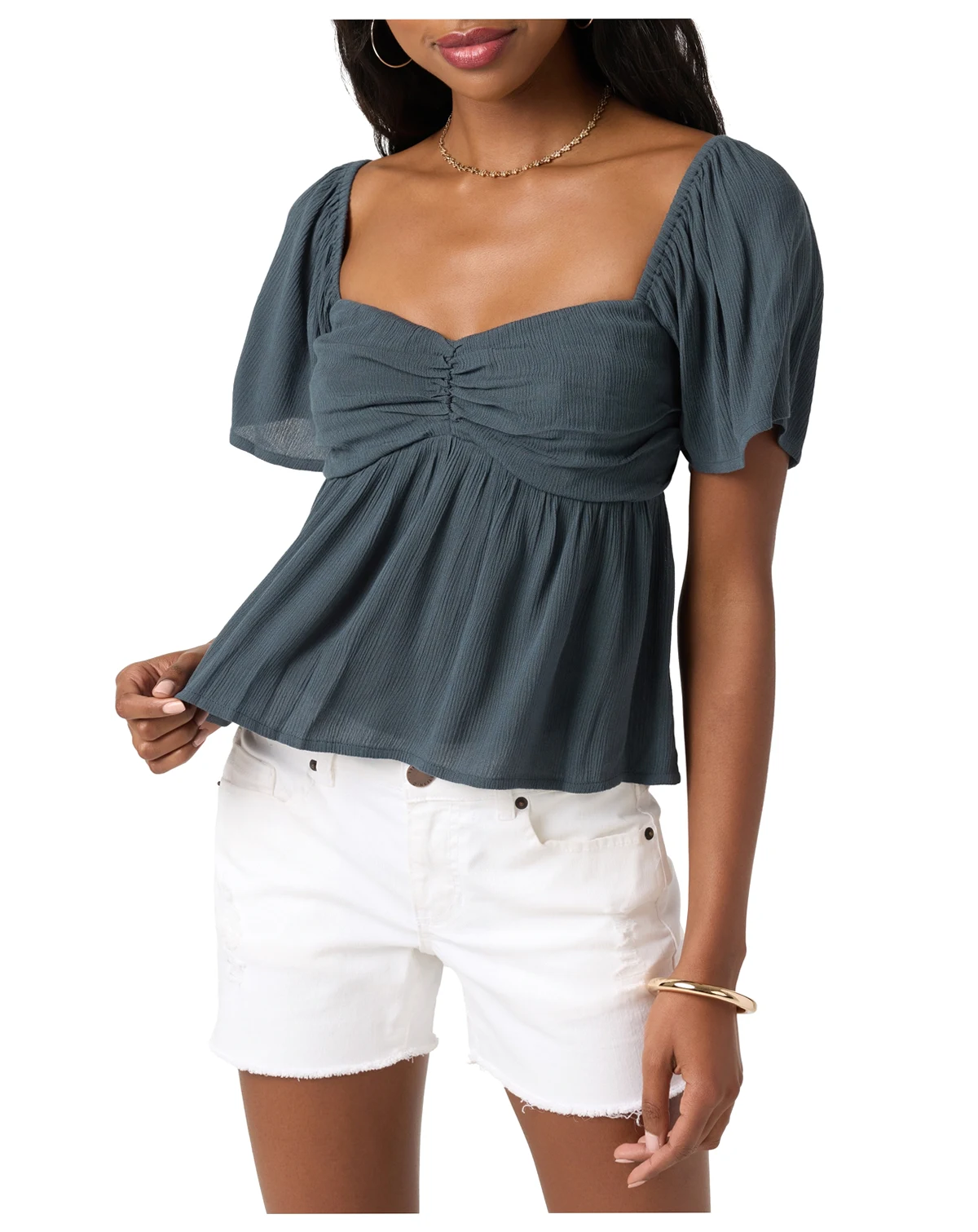 Float through your day in this ethereal top from O'Neill, where soft shirring meets flowy sleeves. Its effortless silhouette and breezy fabric make it your go-to for both spontaneous outings or laid-back lounging.