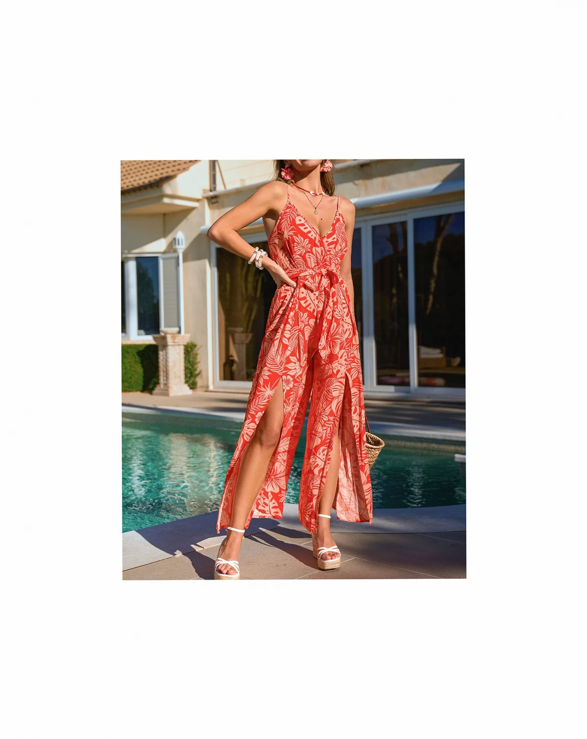 The At the Lighthouse Tropical Jumpsuit is made for breezy, sunkissed days! It has a surplice neckline, sleeveless cut, waist tie, and wide-leg fit for a relaxed, effortless look. Product code: CAA13E6A005AA