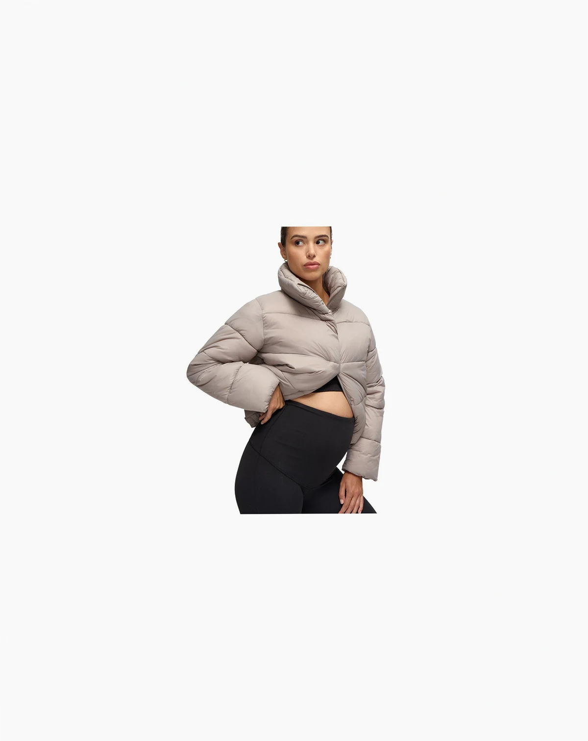 Big warmth, zero bulk. The Cloud Puffer Crop is your go-to cold-weather layer—designed with a cropped cut that flatters the bump and works seamlessly post-pregnancy. Lightweight but seriously warm, it features a plush feel, stand collar, and roomy fit for easy layering over leggings, hoodies, or whatever you're rocking this season. Street-ready, stroller-ready, always ready.