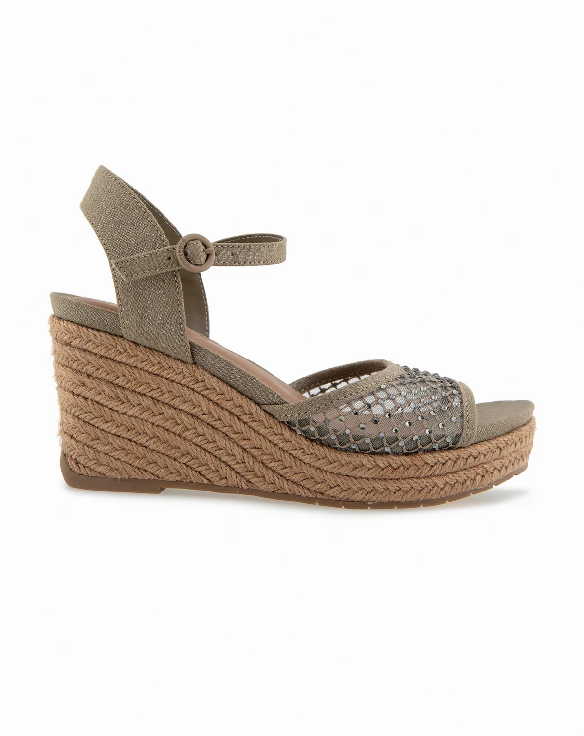 Transform your sandal collection with Kenneth Cole Reaction Caegan footbed wedge, designed for both comfort and versatility, seamlessly transitioning from day to evening the sparkling mesh detail adds a delightful touch, bringing a bit of bling to your ensemble.