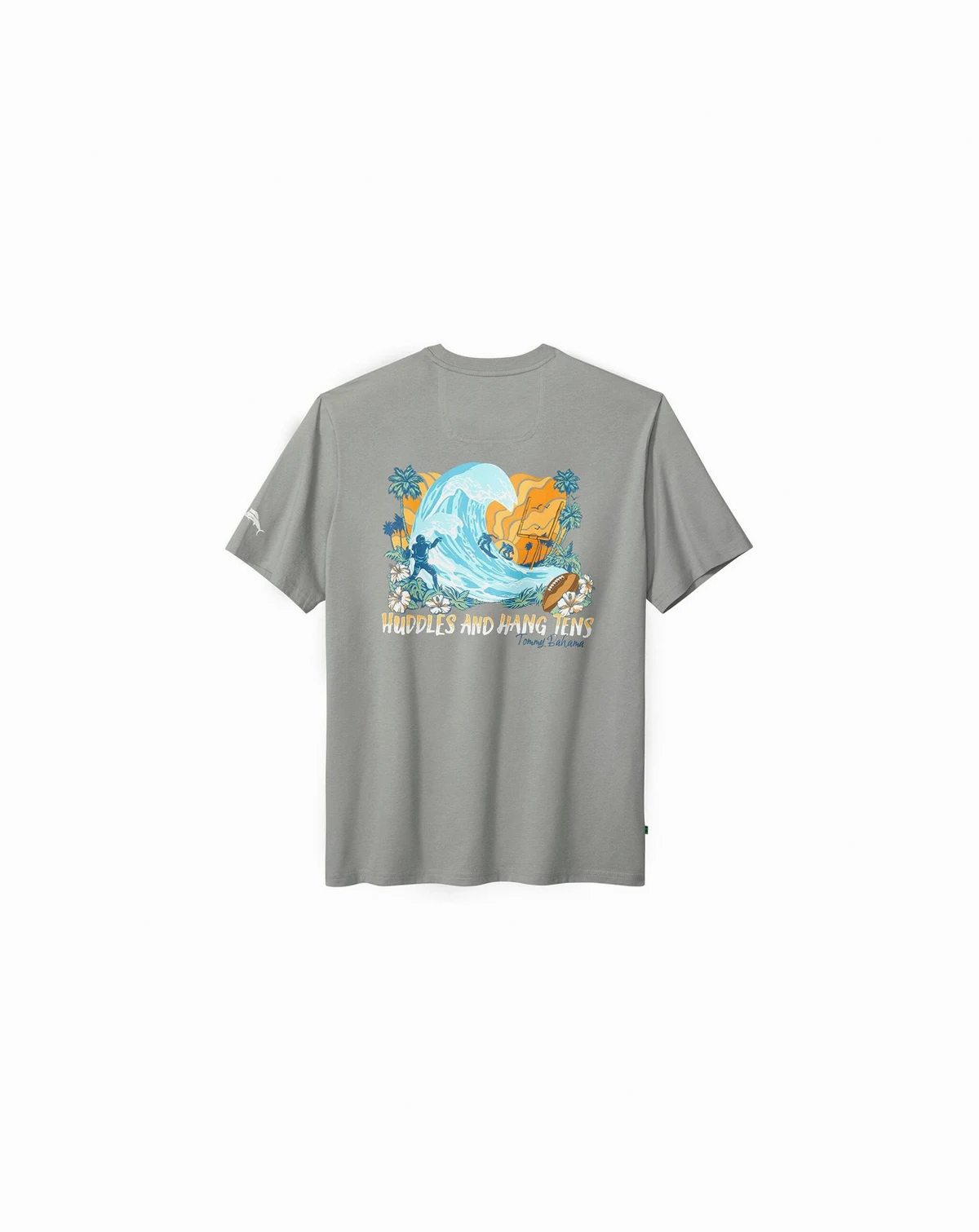 Relax on island time while showing your San Francisco 49ers pride with this Huddle Hang Tens T-shirt from Tommy Bahama. The embroidered San Francisco 49ers logo on the chest adds a sophisticated touch of team spirit while the beach-themed football graphic on the back keeps things casual. The soft cotton material and tagless collar design will keep you as comfortable as possible while you rep your favorite team.