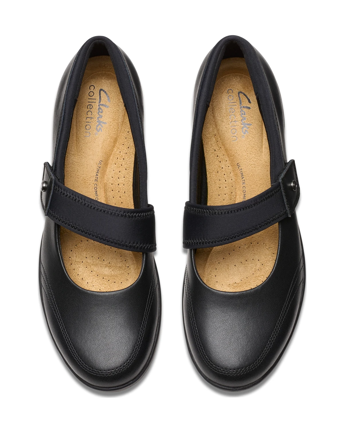 A flexible sculpted wedge to take you from back to work and beyond, our Suttyn May Mary Jane shoe combines premium materials with effortless comfort. Crafted from sleek black leathers for ultra-versatile wear, this staple profile comes together with our Ultimate Comfort footbed and a flexible, lightweight sole. Where will yours take you