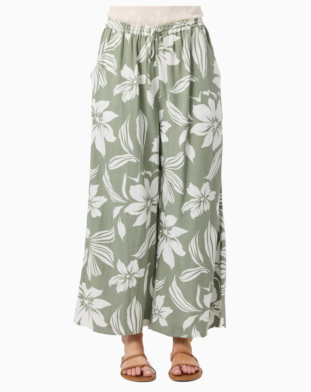 Cute and comfortable, these O'Neill pants offer a wide-leg silhouette and flowy fit for relaxed style. The elasticated waistband with drawstring ensures an easy, adjustable closure.