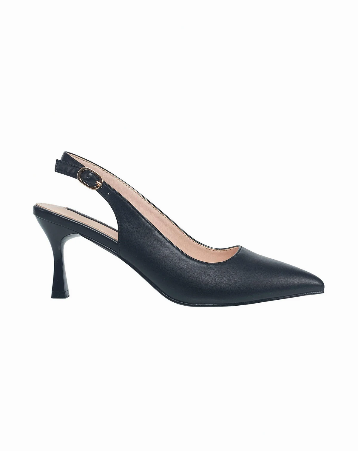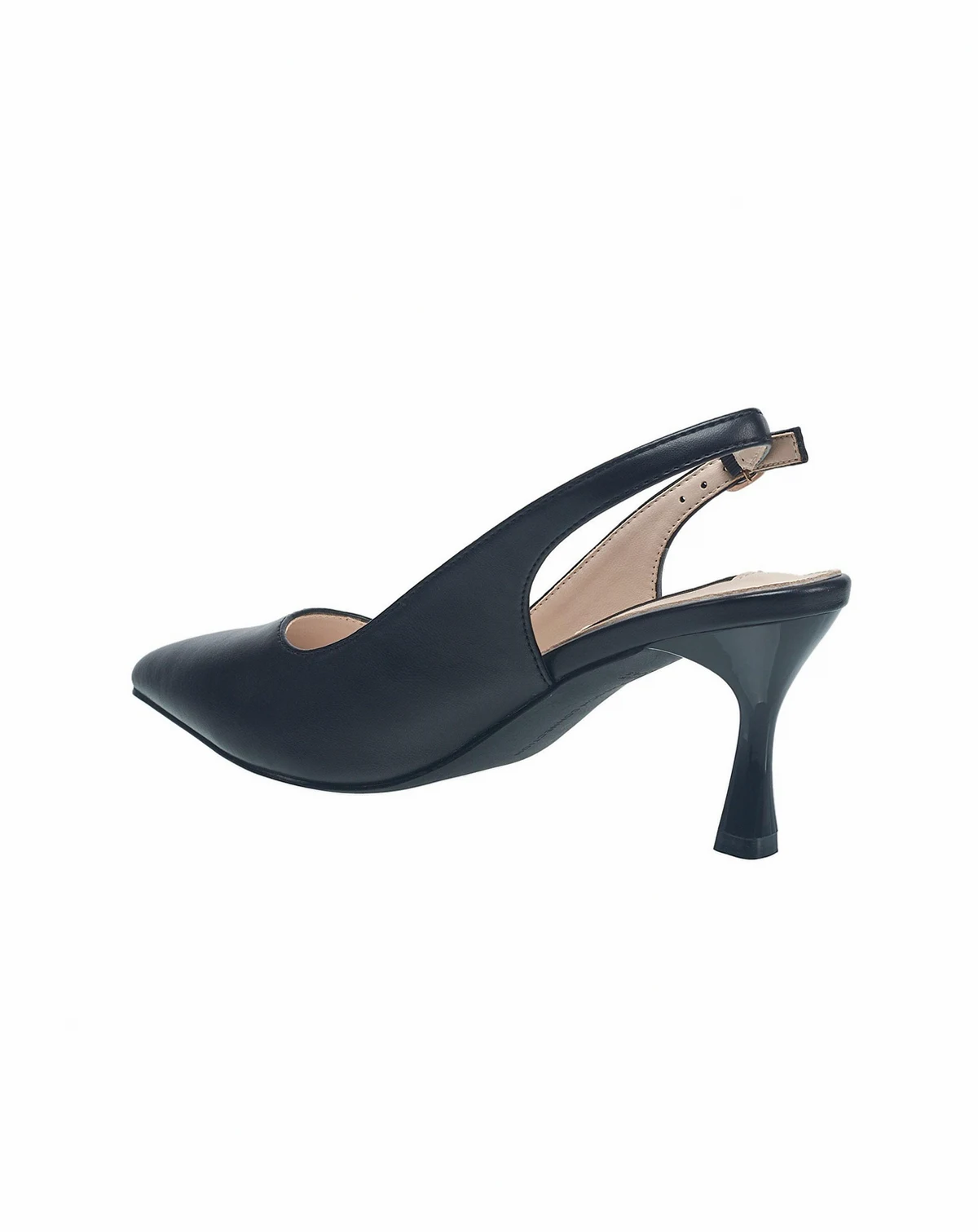 The Brenna Heel brings a modern edge to classic elegance. With a polished slingback strap and pointed toe, this sophisticated design stands out with its higher, tapered heel for a graceful lift. Perfect for complementing both formal and casual ensembles, the Brenna Heel pairs seamlessly with dresses, skirts, or tailored pants, making it an essential addition to your wardrobe for effortless style and versatility.