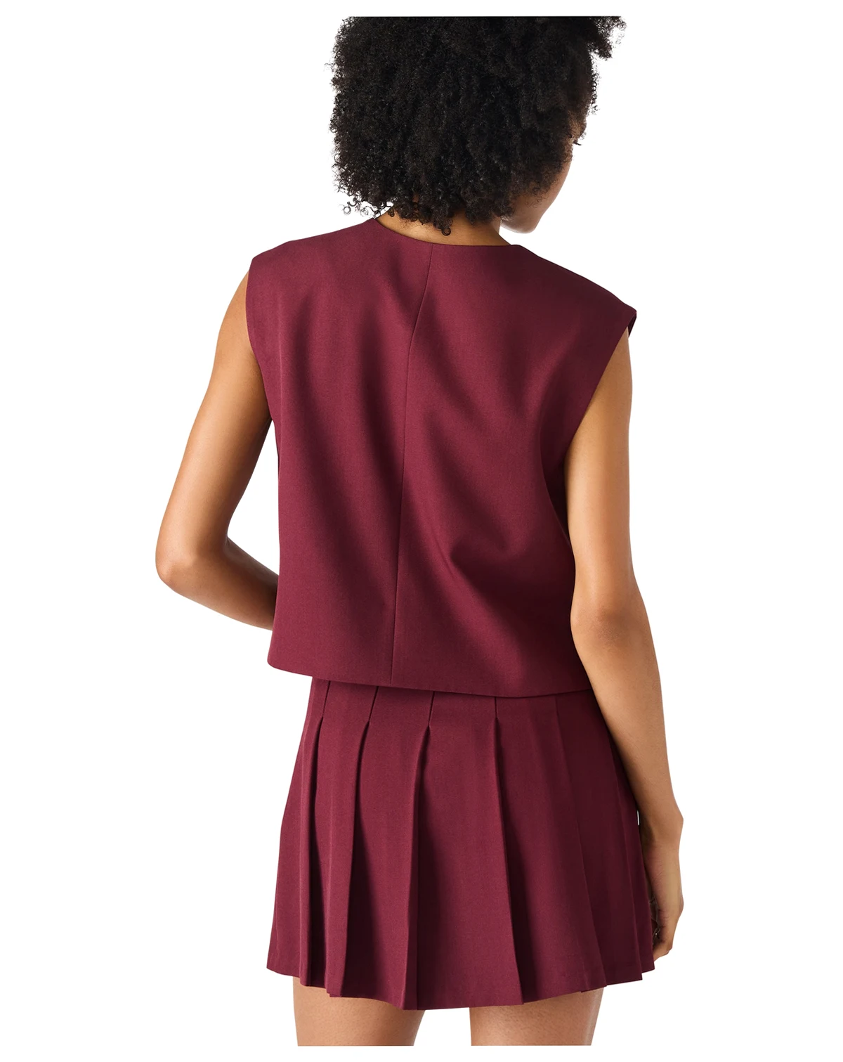 Add a polished edge to your wardrobe with this Steve Madden Alessa top, designed in a vest-inspired style. It features a classic crew neckline and a button-front closure, creating a structured yet modern look. The sleeveless design offers versatility and easy layering.