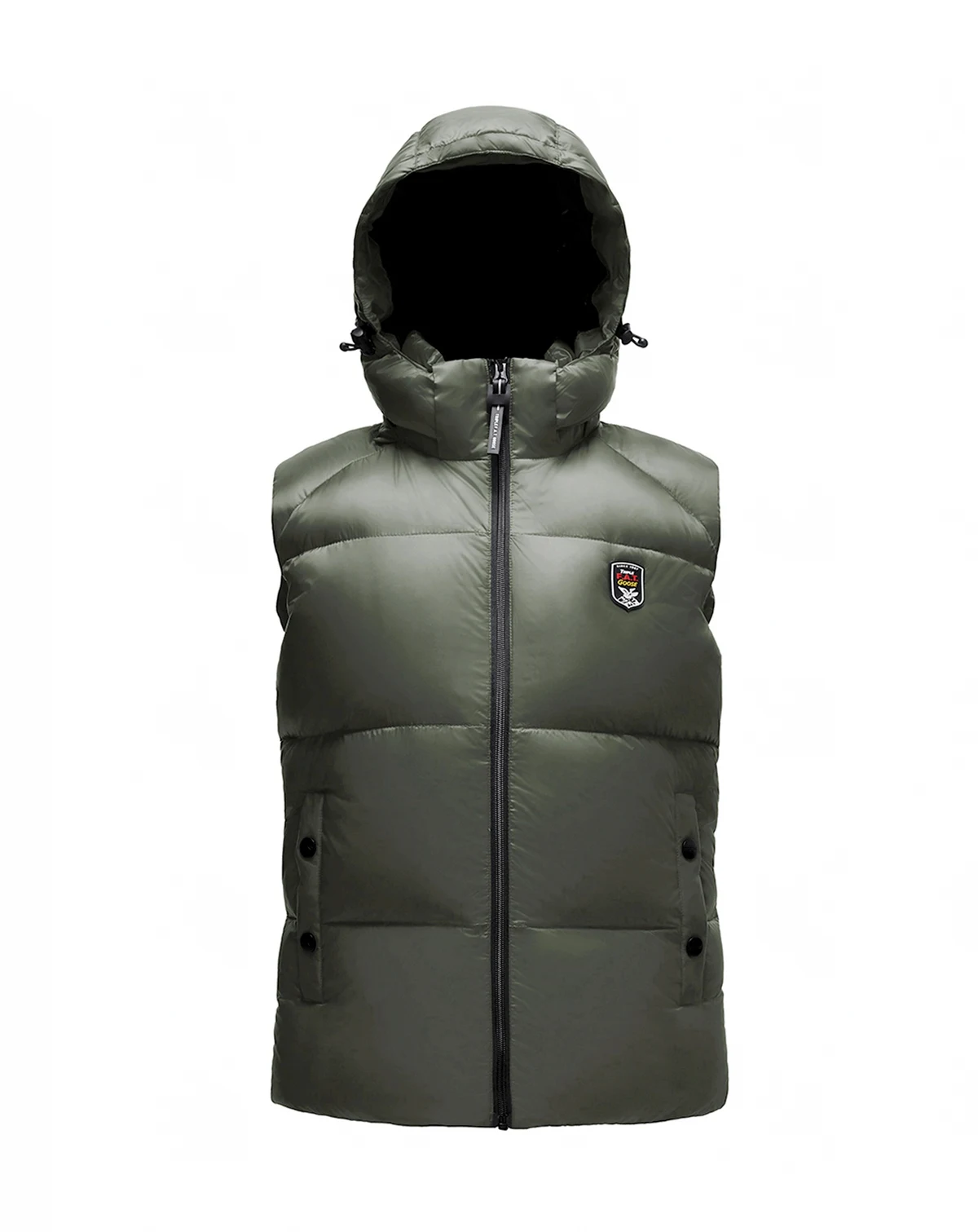 Lightweight and warm, the Jacobsen is a men s down vest engineered with eco-friendly materials. The fabric is made with a 2-layer recycled nylon fabrication and treated with an eco-friendly DWR. This outer shell envelopes 8.5 oz of 750 fill power recycled down, a layer that provides warmth while also remaining breathable. The lofty down and soft fabrication combine to make the Jacobsen extremely comfortable to wear. Meanwhile, the insulated hood on the Jacobsen can be easily removed when necessary. The Jacobsen is highlighted by the Triple F.A.T. Goose shield logo badge on the front chest.