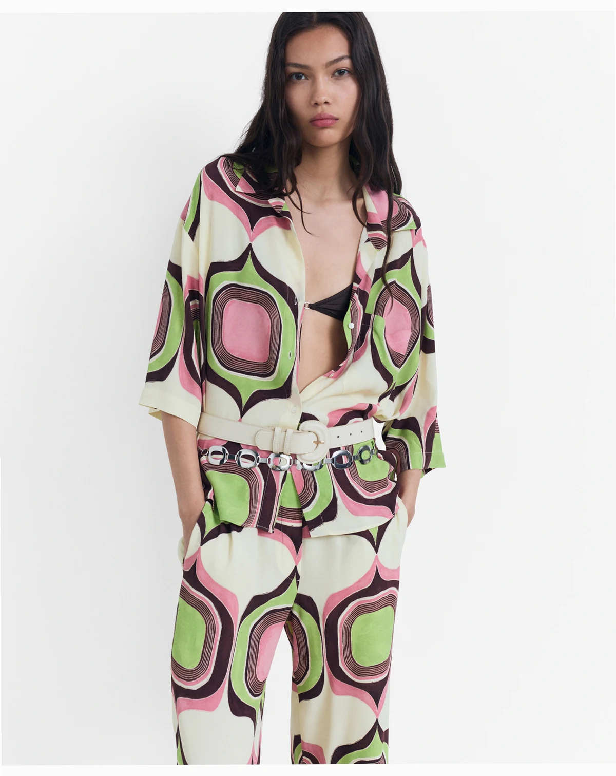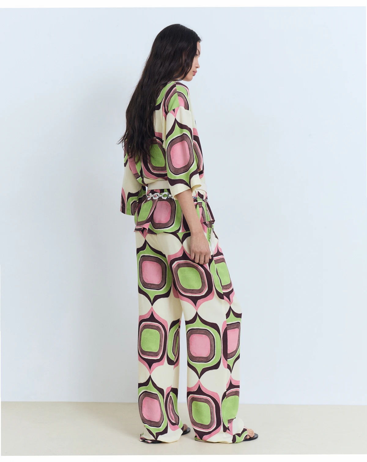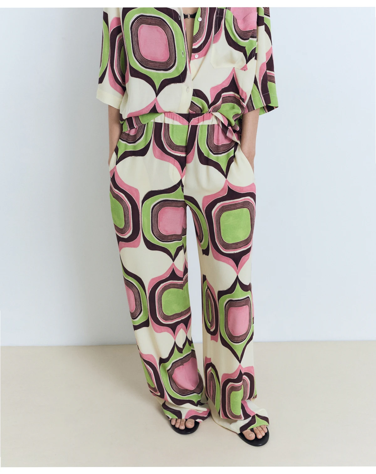 Printed in geometry, the Geometric Print Pants from Mango layer motion with rhythm. These medium waist pants feature long and straight design with geometric print, elastic waist, two side pockets.