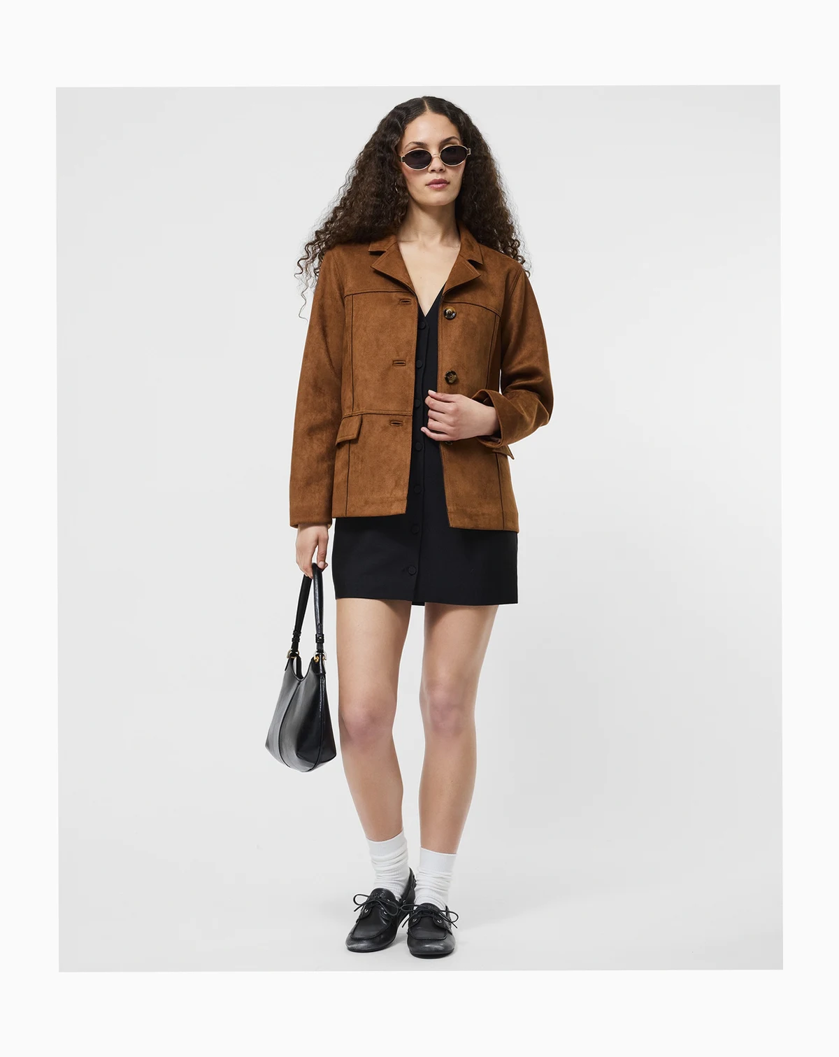 Step out in effortless style with this French Connection collared jacket. Designed with practical pockets for on-the-go essentials and a classic button closure, it combines functionality with a sleek, tailored silhouette.