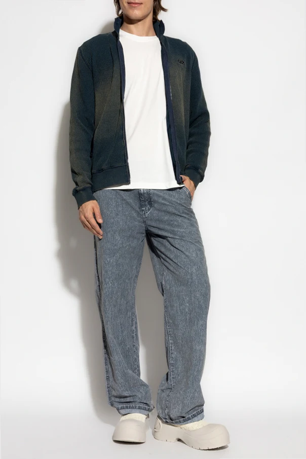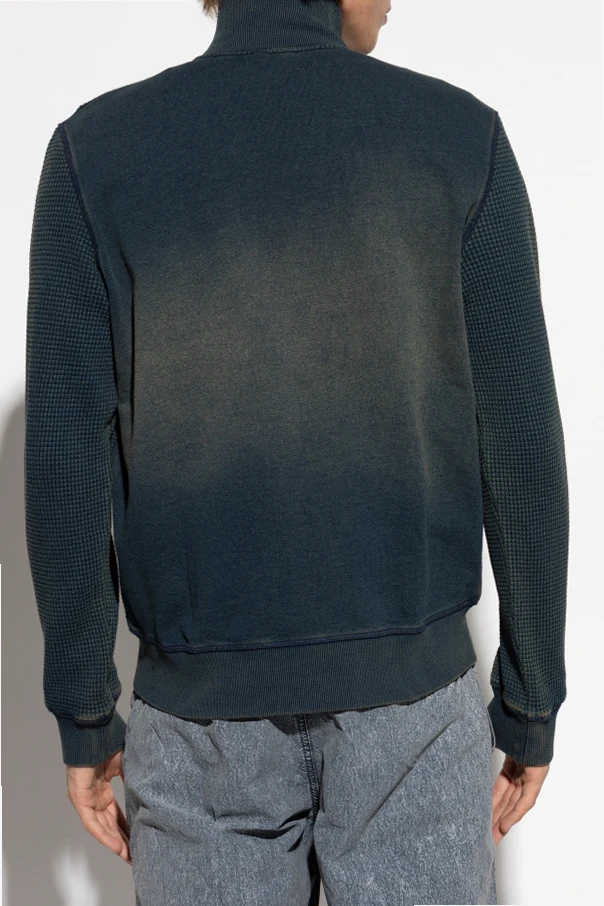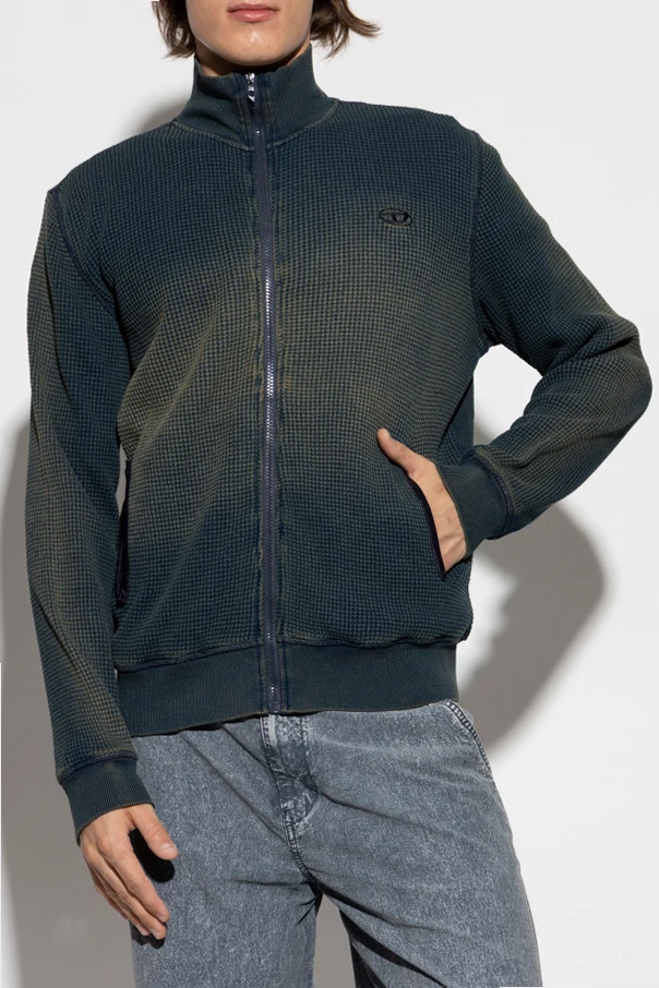 The S-WAFY-ZIP sweatshirt by Diesel elevates casual sophistication with its timeless, straight-cut silhouette and distinguished high stand-up collar. Crafted from sumptuously thick, textured cotton boasting a refined three-dimensional waffle motif, this piece masterfully balances comfort and modernity.