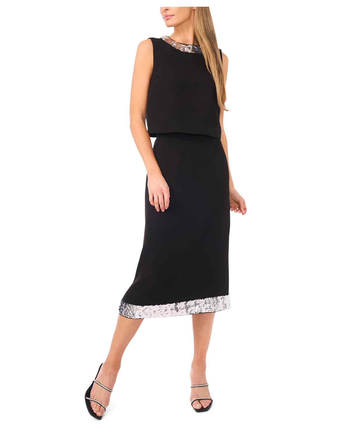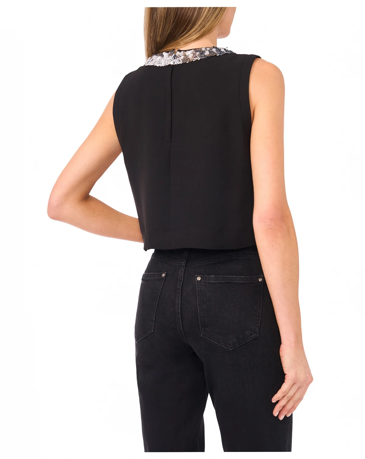 Shimmering sequin paillette trim brings a touch of glamour to this CeCe top. Designed in a cropped silhouette with a crewneck and sleeveless cut, it secures with a hidden center back zipper for a sleek finish. ABOUT THE BRAND: CeCe is a contemporary lifestyle brand inspired by a romantic take on the everyday, punctuated by taste, wit, and on-the-go flair.