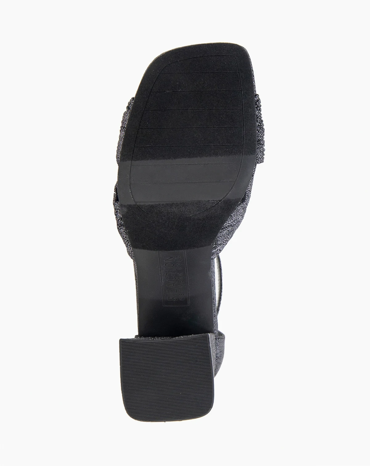 The Kenneth Cole Reaction Nessa two piece knotted dress sandal is set on a block heel.