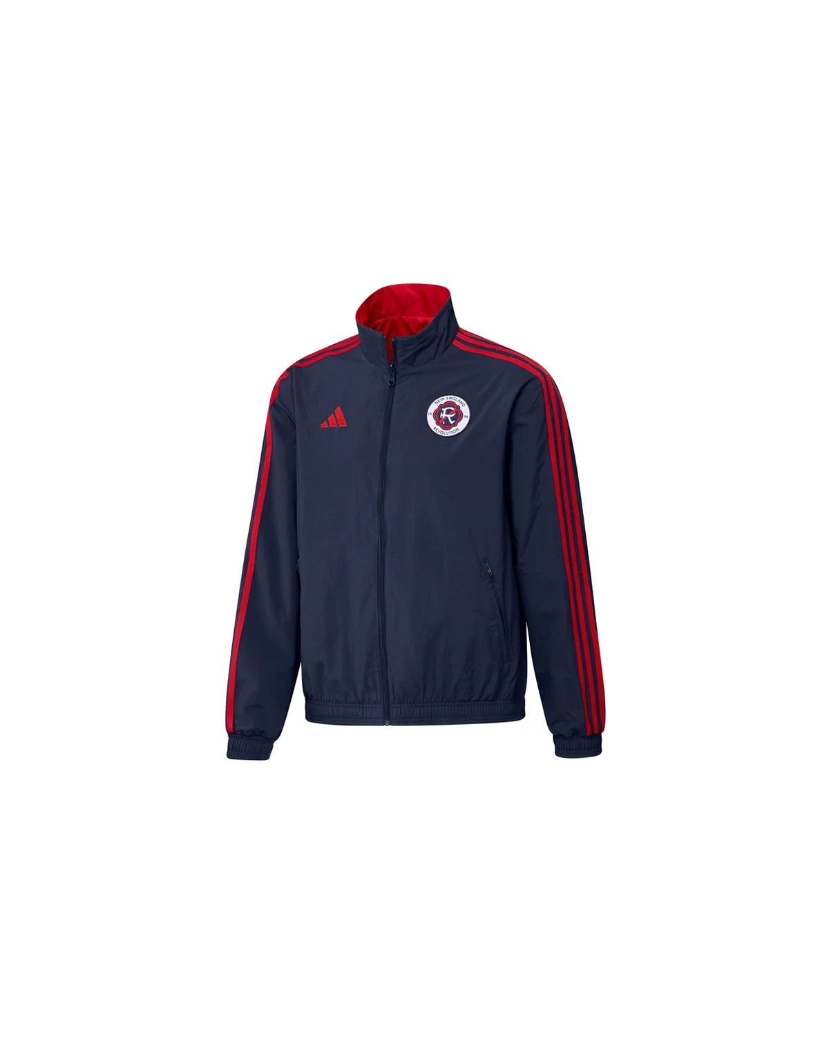 Go above and beyond to put an emphasis on your New England Revolution fandom by sporting this 2023 On-Field Anthem Full-Zip Reversible Team Jacket from adidas. The team's iconic logo on the chest is brought to life by the striking designs of the home and away New England Revolution jersey designs, making it the perfect option for representing your cherished squad. Thanks to the two front zippered pockets, you'll have more than enough room to safely store your keys, tickets and other New England Revolution match day essentials.