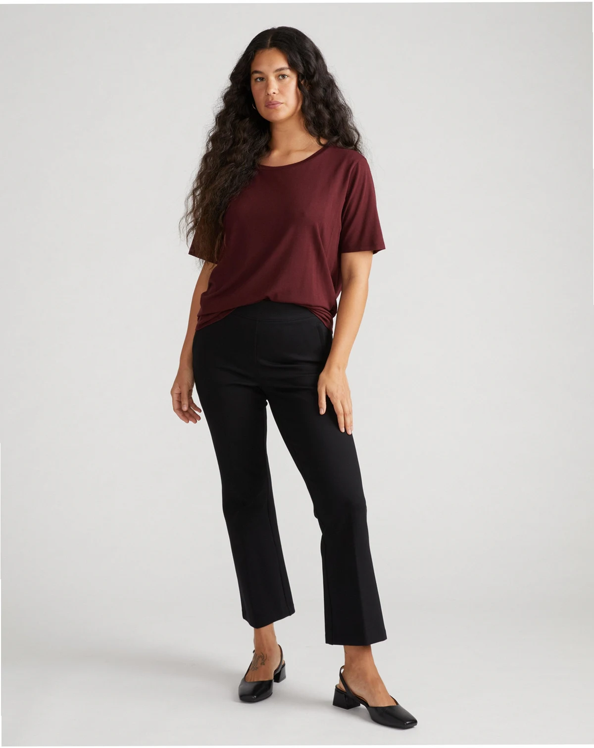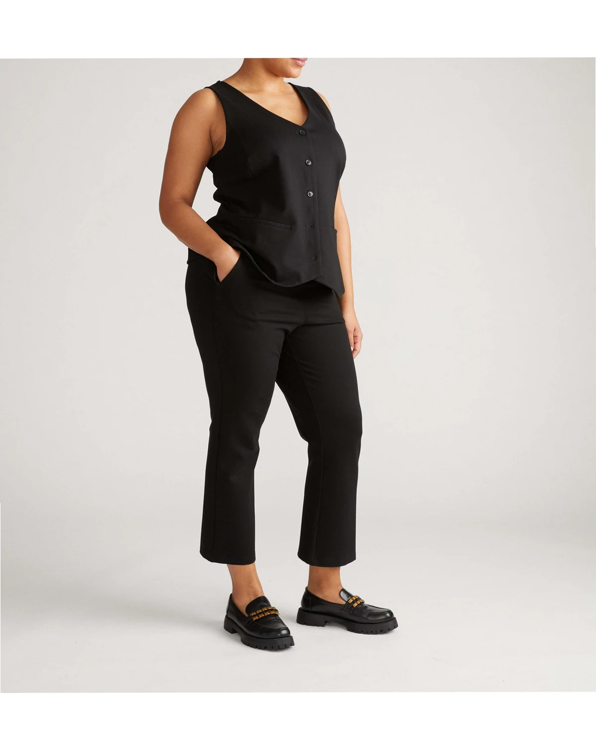 Heavyweight ponte fabric with stretch for a smooth fit.; Approximate 27 inch inseam for a modern cropped length.