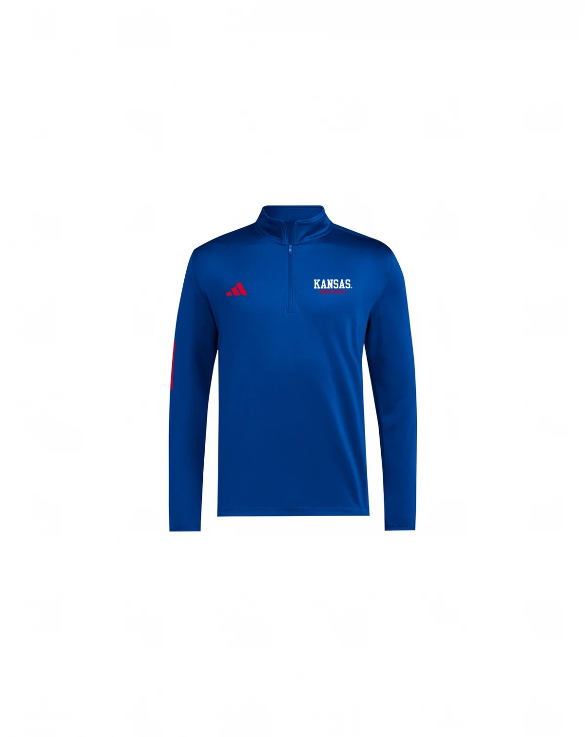 Hit the links in style with this Kansas Jayhawks Half-Zip Pullover Golf Jacket from Adidas. This lightweight jacket boasts a mock collar to shield you from the wind and ensure comfort on the course. Show your Jayhawks pride with the heat-sealed graphics, adding a touch of sporty style to your golf attire.